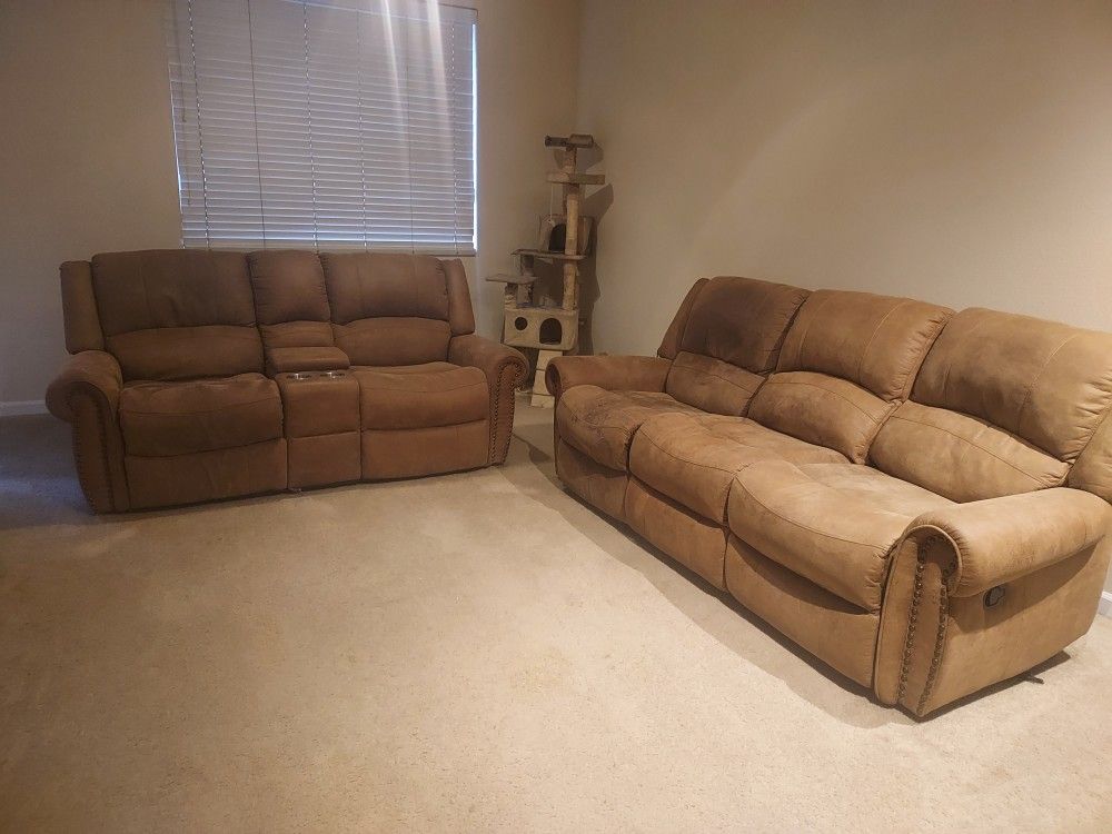 These are cozy Recliners/ Sofas that needs some cleaning. Pet friendly (cats in home) Once you clean them they are good to last. Easy to clean and take care of. YOU MUST PICK IT UP. Moving soon. Thanks!