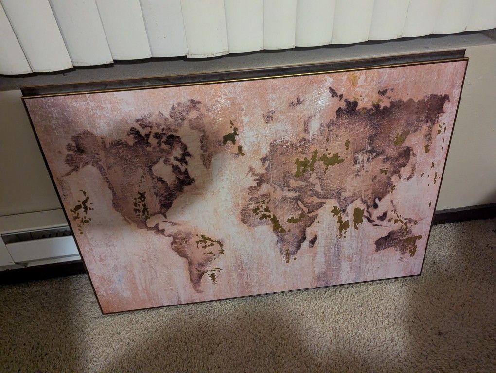 37 1/2 in (Length) x 25 1/2 in (Height) Very light. Textured design. Frame part of it (dark brown)