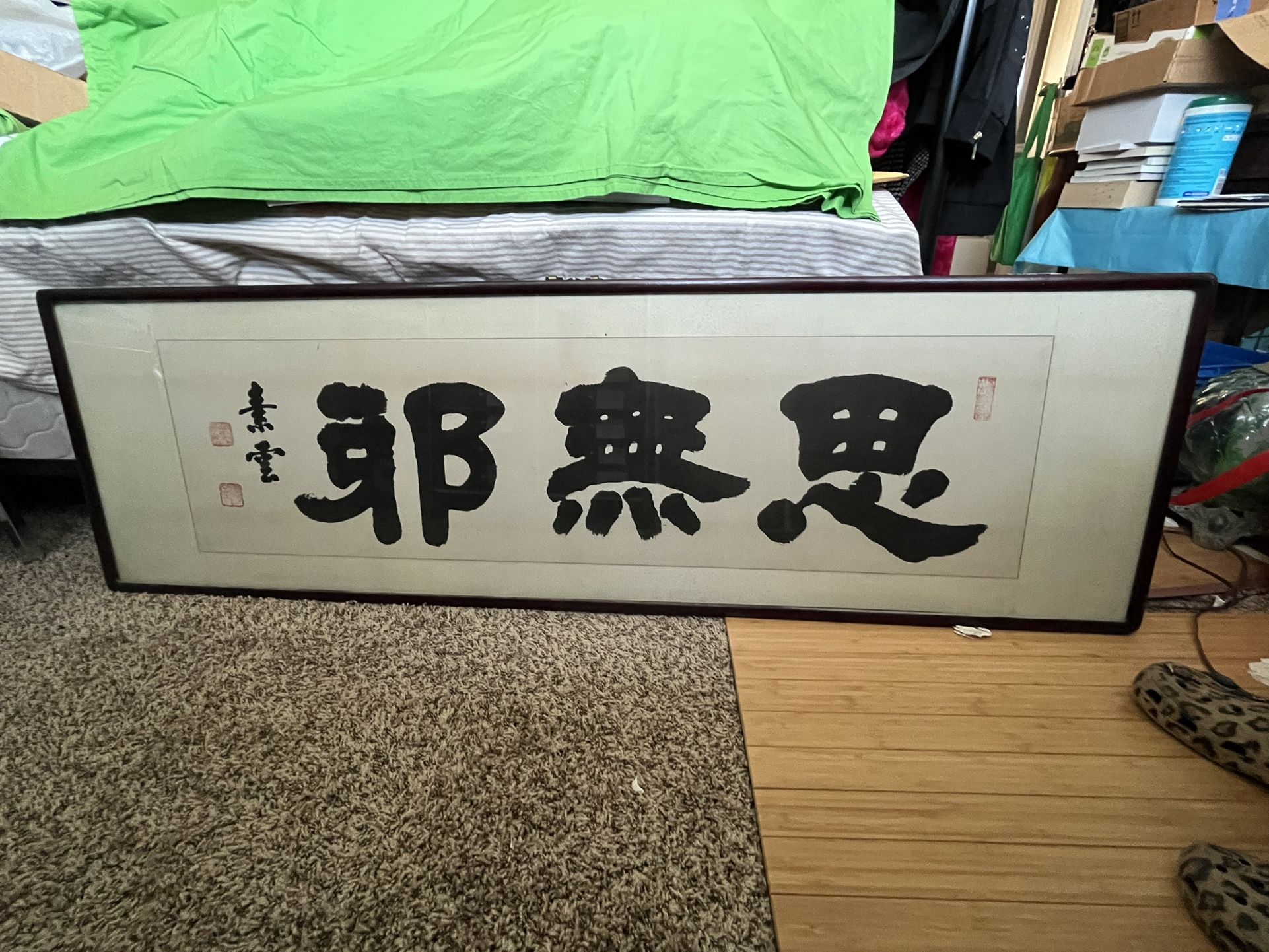 Large Original framed Chinese calligraphy artwork. Size 47cm X 153 cm Cash only