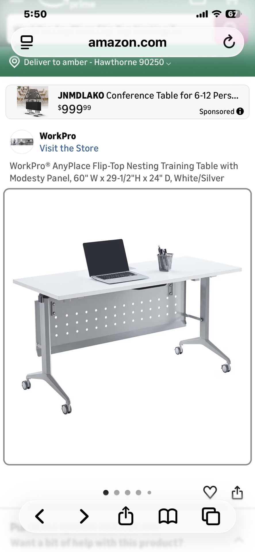 WorkPro® AnyPlace Flip-Top Nesting Training Table with Modesty Panel, 60" W x 29-1/2"H x 24" D, White/Silver