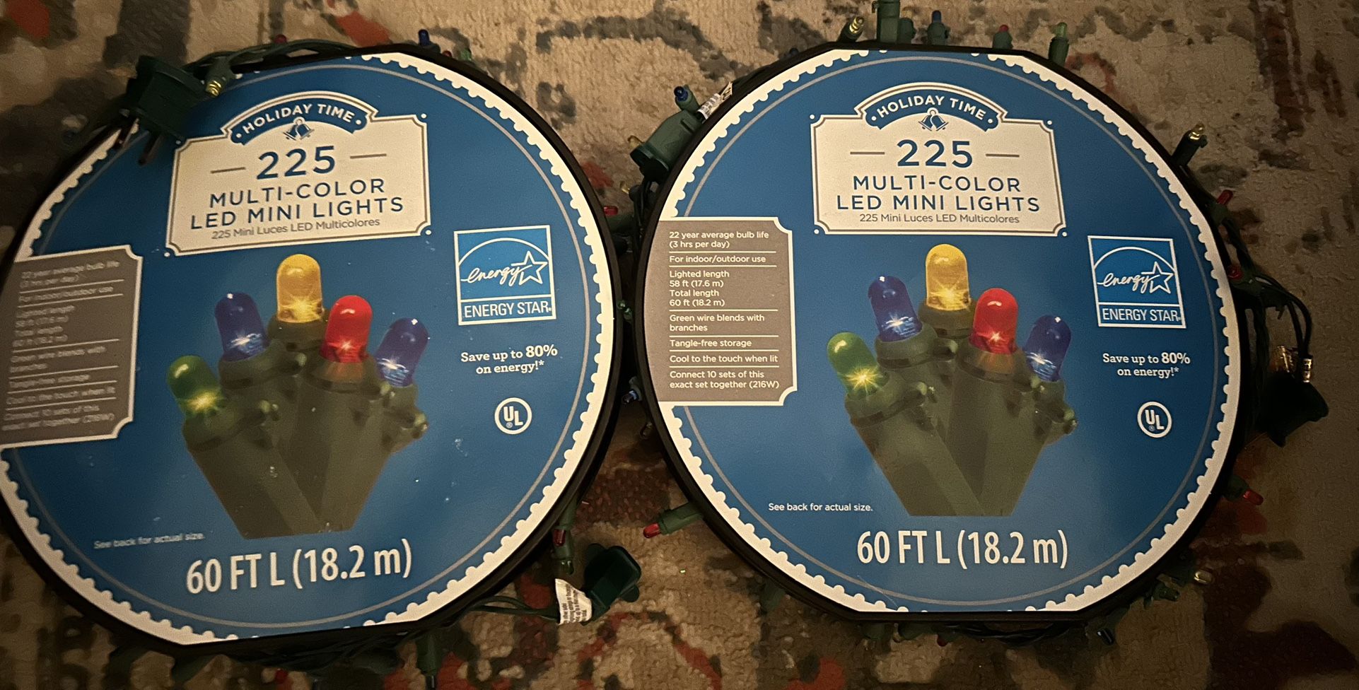 Holiday Time 225 Count Multi-Colored Dome LED Lights 60 feet 2 sets