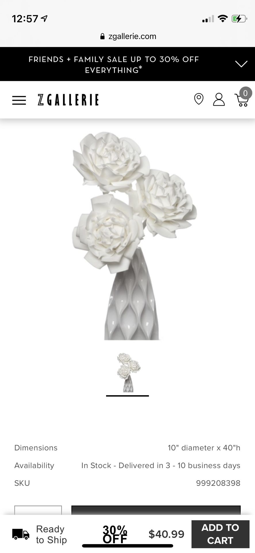 3 decor big flowers from Z Gallery. Has some discoloration but still looks good. Dimensions: 40"H 10" Diameter of flower