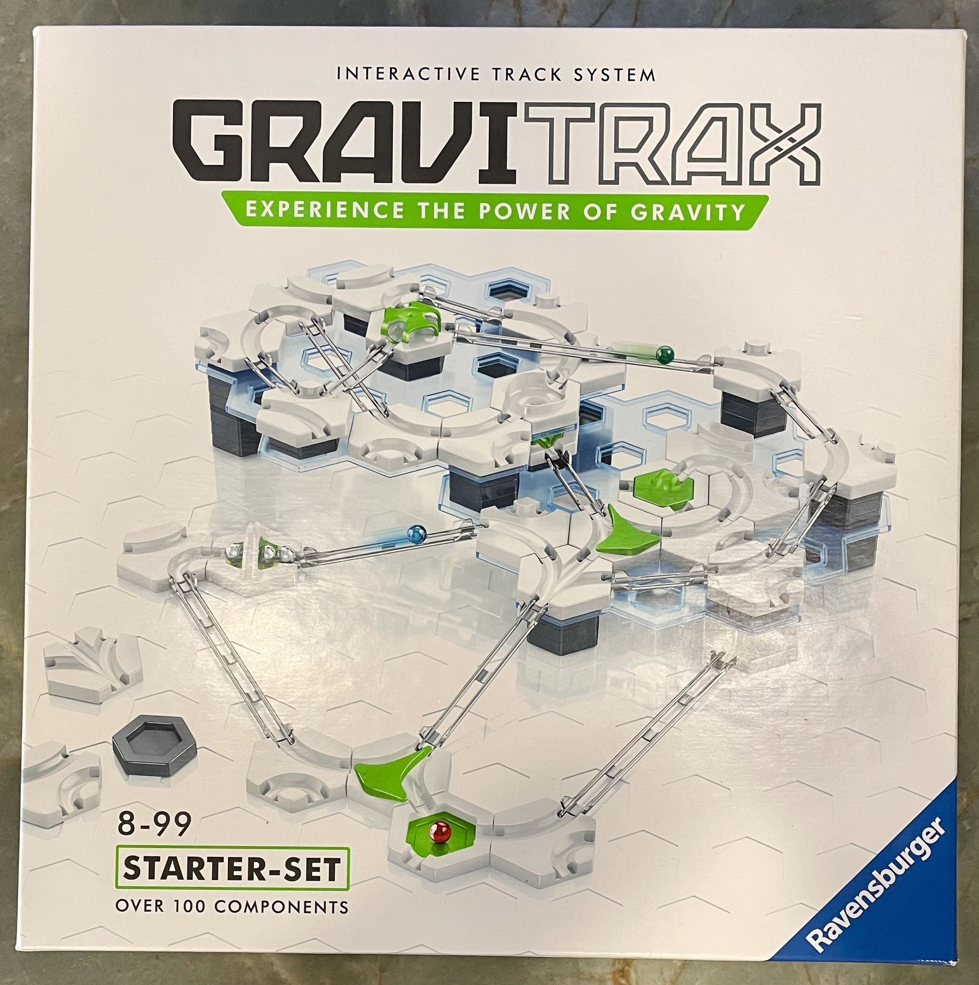 Gravitrax; Interactive track system: Contents: Instructions (D, F, EN, NL, E), construction plan booklet, task booklet, 4 base plates, 2 transparent levels, 5 balls, 40 large height tiles, 12 small height tiles, 21 curves, 3 junctions, 2 switches, 1 3-in-1 tile, 1 vortex, 1 launch pad, 1 magnetic cannon, 3 long tracks, 6 medium tracks, 9 short tracks, 1 finish line, 4 basic tiles, inserts for basic tiles: 2 catchers, 1 freefall, 1 splash, 1 landing. It is missing one ball.