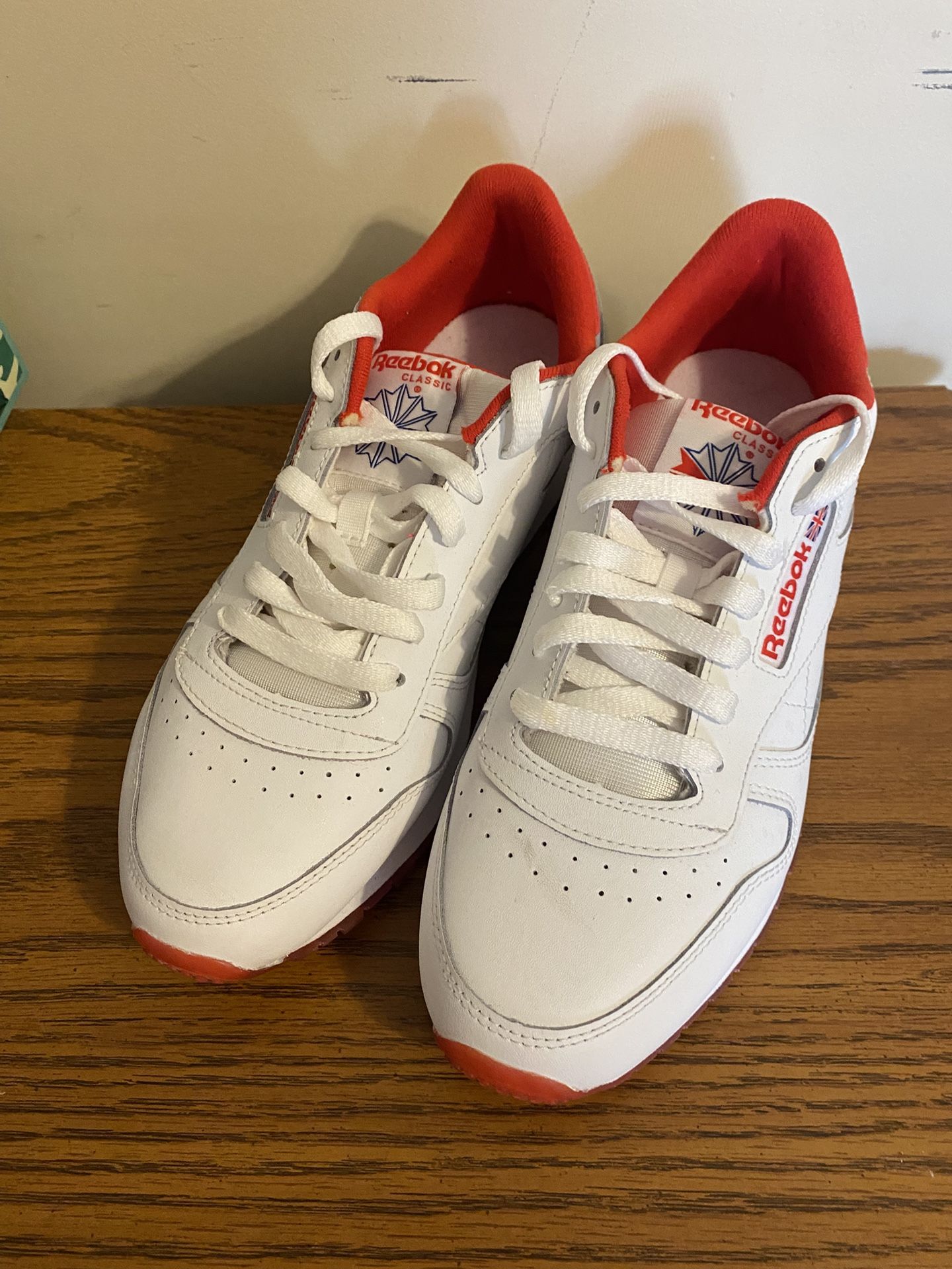 Brand new men’s Rebook classic leather sneakers size 7.5. A retro running shoe that transitioned into casual wear. They have a cushioned midsole and leather uppers. Pick up is in Wallingford. Cash only.