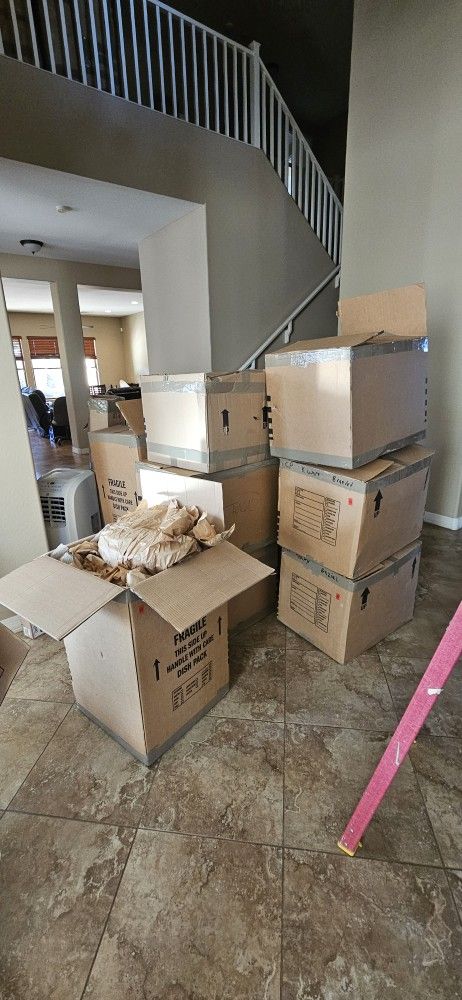 FREE! Lots of moving boxes all sizes including wardrobe size boxes. Also lots of packing paper and bubble wrap. Located in Queen Creek off of Crimson and Ocotillo