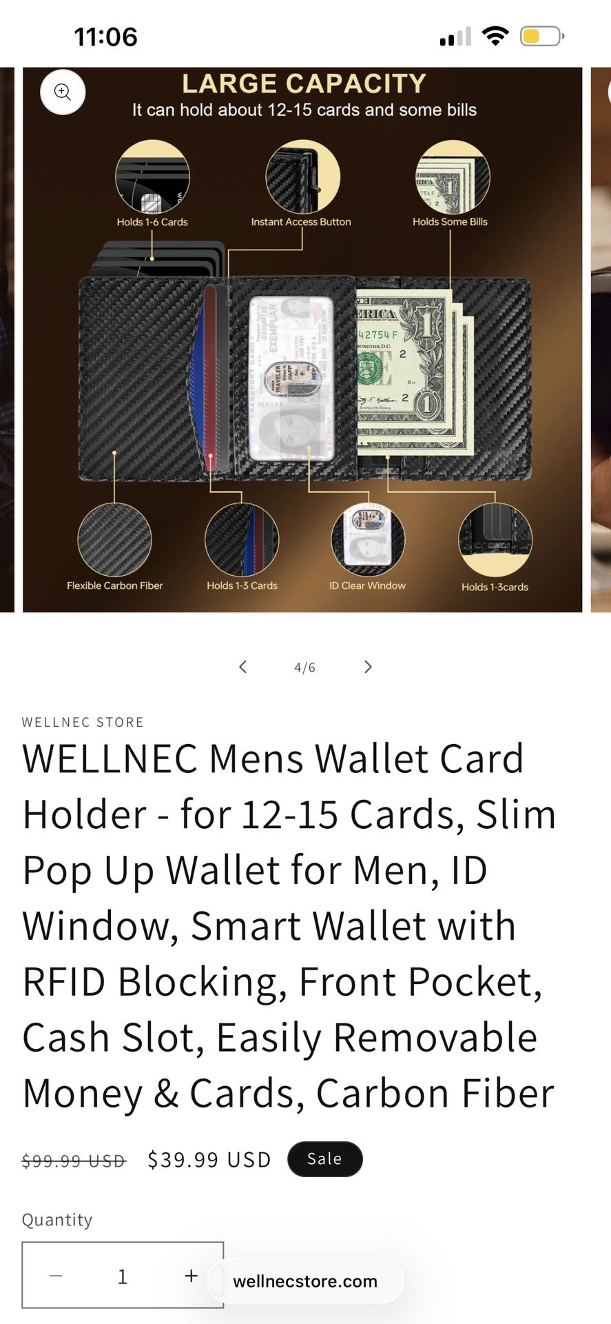 Holds a total of 12-15 cards & cash Has front pocket for coins Smart wallet with RFID blocking