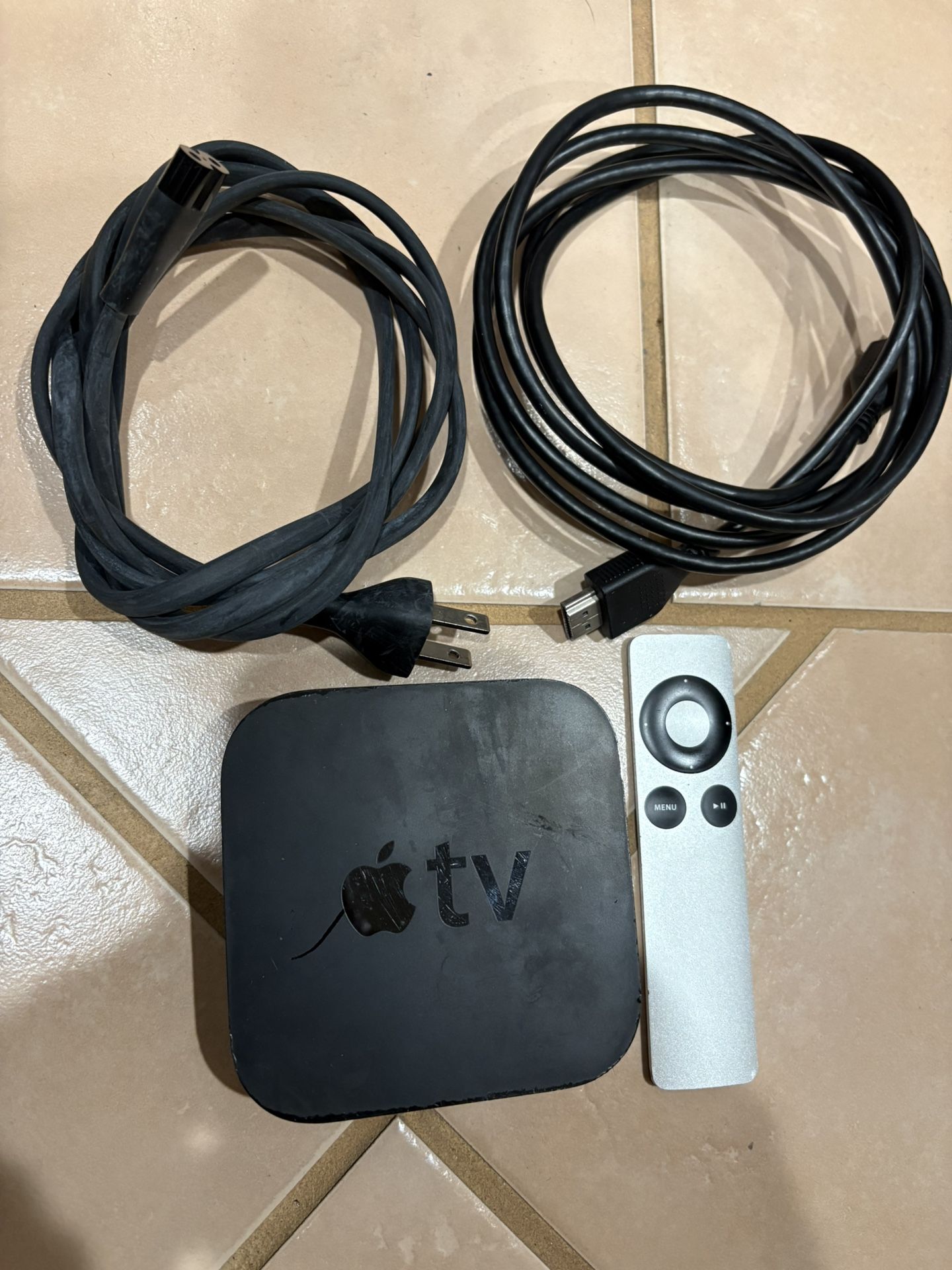 Working Apple TV with remote control, power cable and HDMI cable.