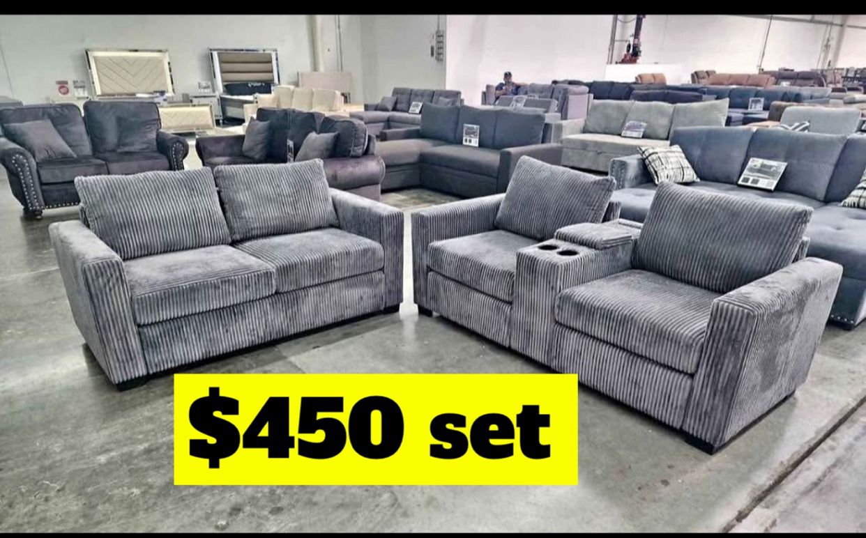 2-Piece Sofa Set Sofa + Loveseat + Cup Holders + Console + Charging Station No showroom No set up •Brand new in box We deliver Furniture directly from the manufacturer to your 🏡 •deliver to San Diego $50 Pay upon delivery cash only Firm price