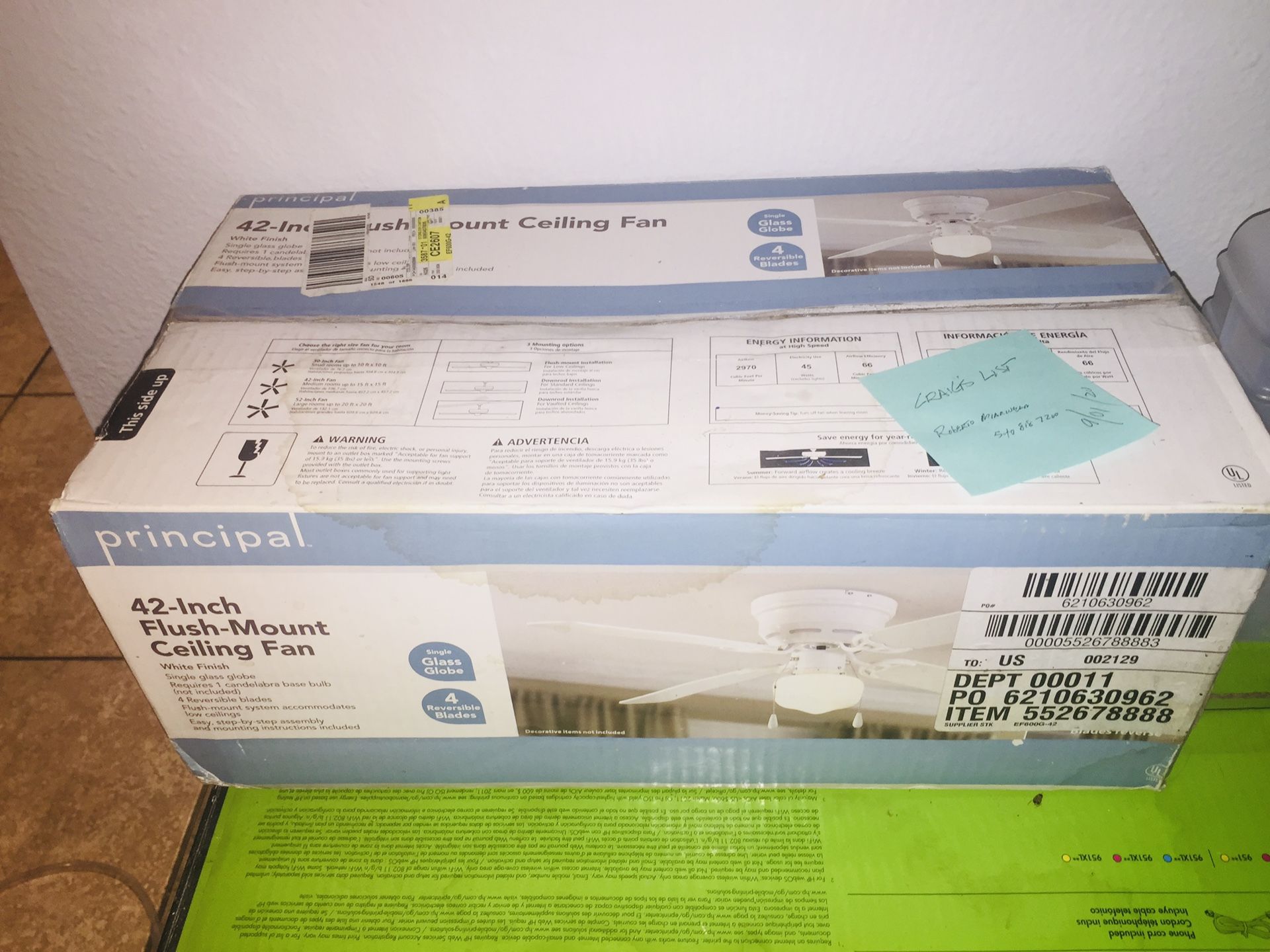 42 inches fan, never used. Brand new condition