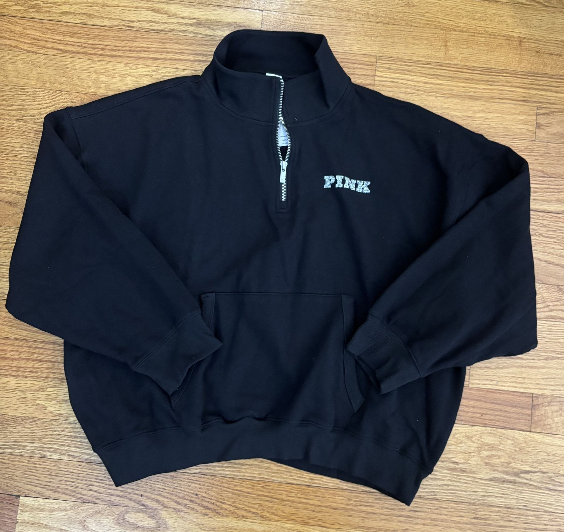 Victoria’s Secret PINK Half Zip Sweater Women’s XL Black Gray Logo Pullover New