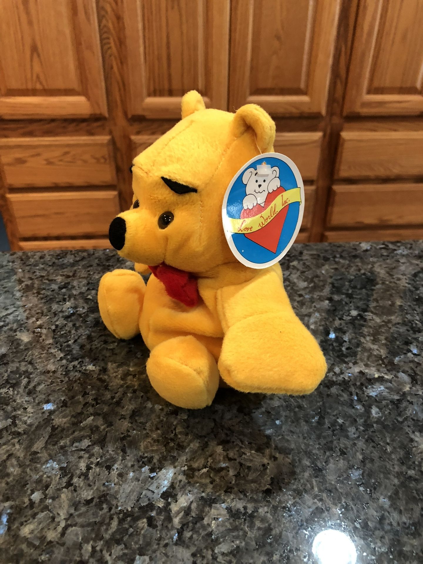 Winnie The Pooh Bear Bean Bag Plush. Size 6 inches Tall . Brand New With Tags Has been on display in a cabinet with a Plush Beanbag collection. Smoke free home