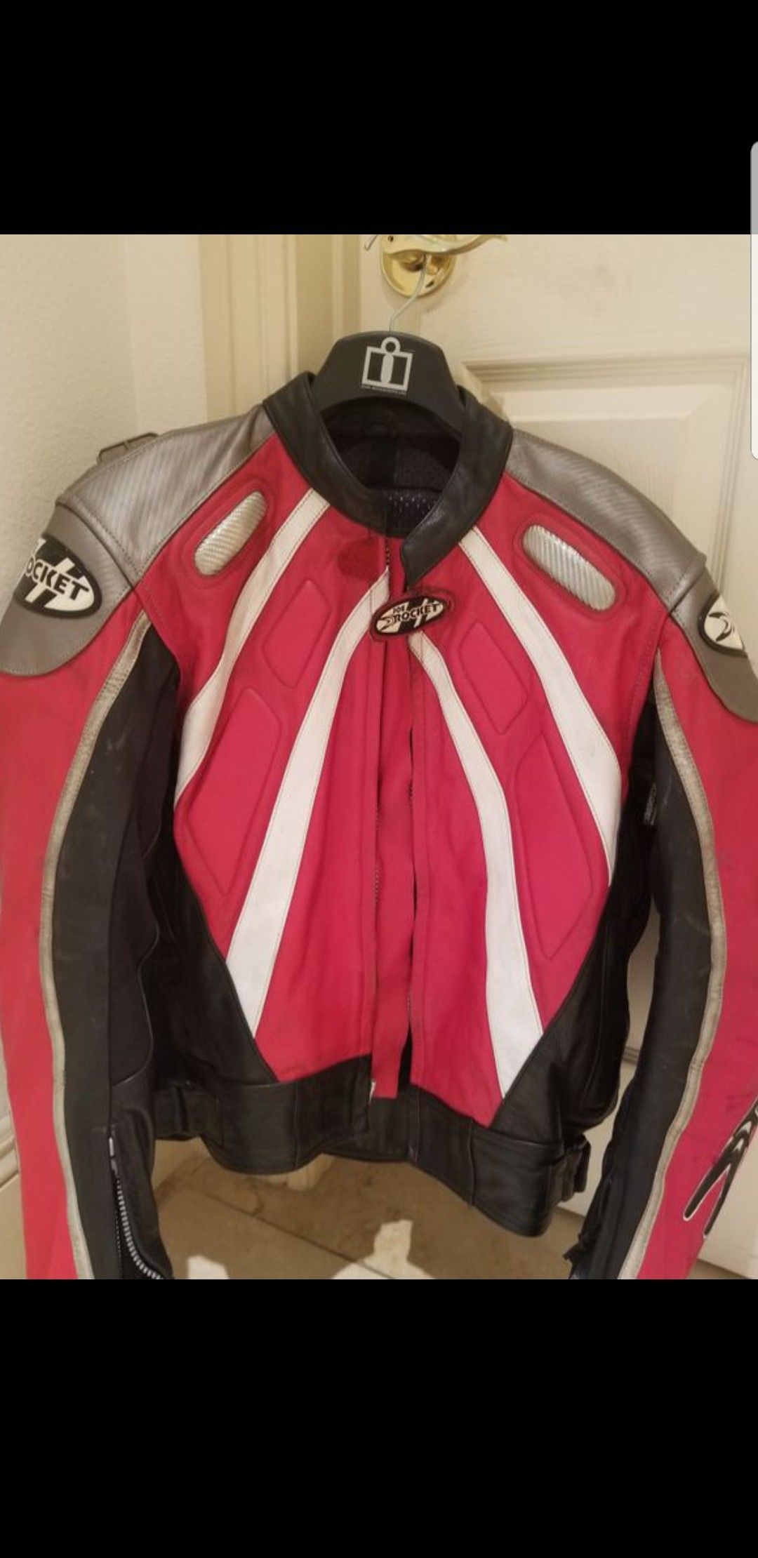 In good condition full leather jacket with all the protection pads,Made in Korea,