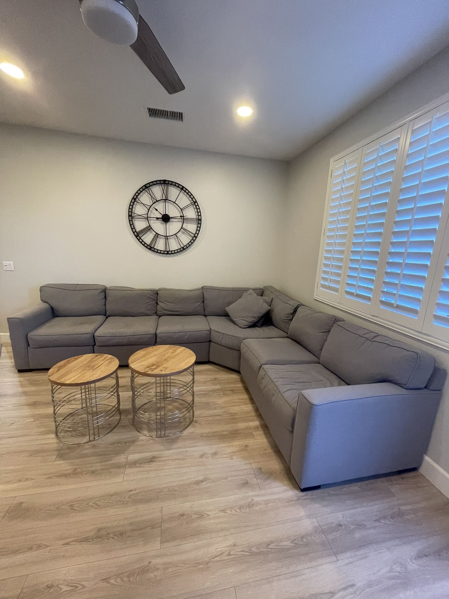 Description: Large L-shaped sectional sofa in gray color. Very comfortable and still sturdy. Used for about 10 years, so there is normal wear and some light stains, but no structural issues. All cushions included. Dimensions: 128” x 104” (L-shape configuration) Great for a family room, playroom, or rental property. Condition: Used – fair to good (normal wear from long-term use) Pickup only. Heavy – please bring help.