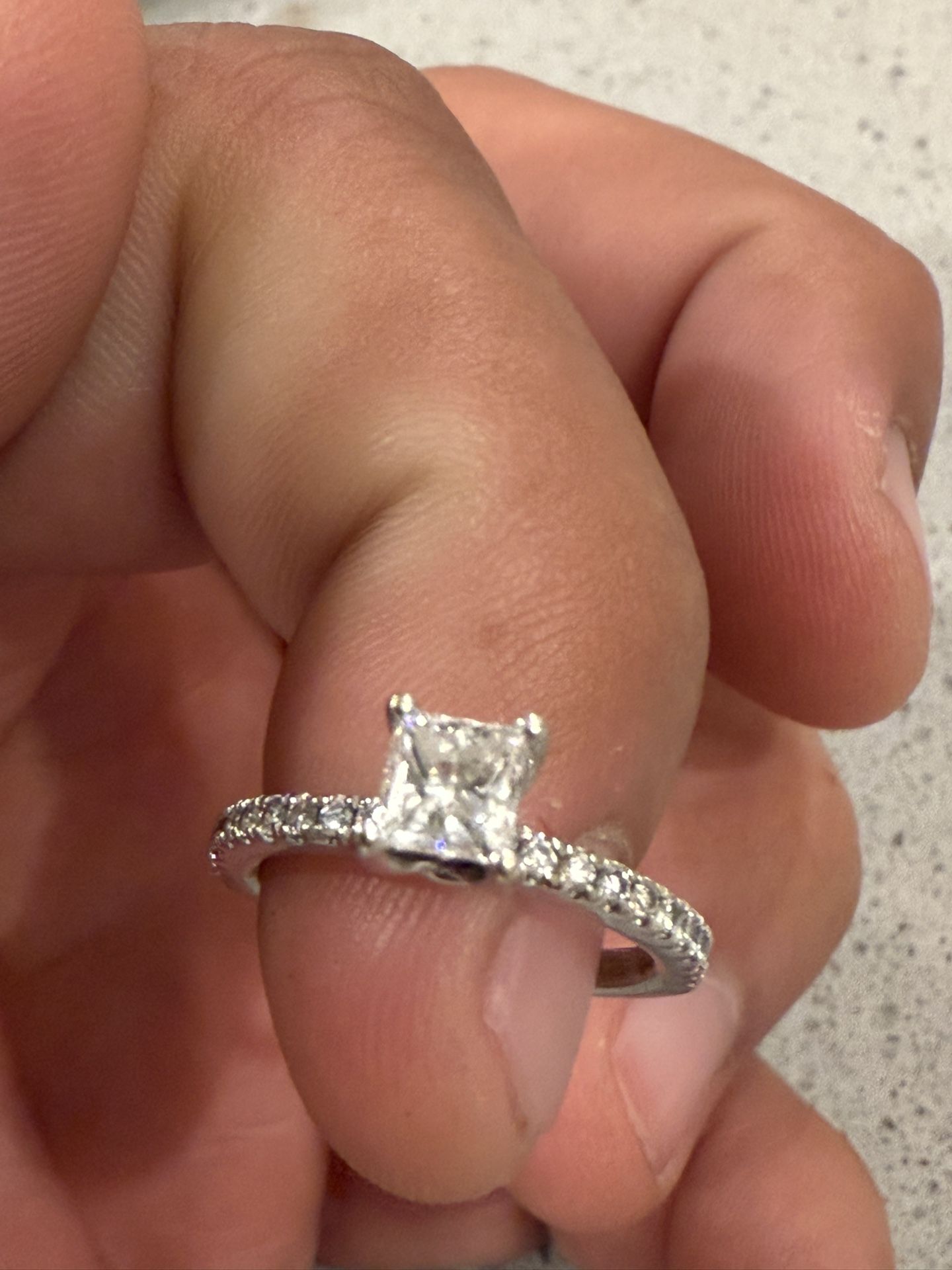 Vera Wang Love Collection 5/8 CT. T.W. Princess-Cut Diamond Engagement Ring in 14K White Gold Cost Me $1,986 but asking for way less Pics don’t do it justice it’s a beautiful ring.