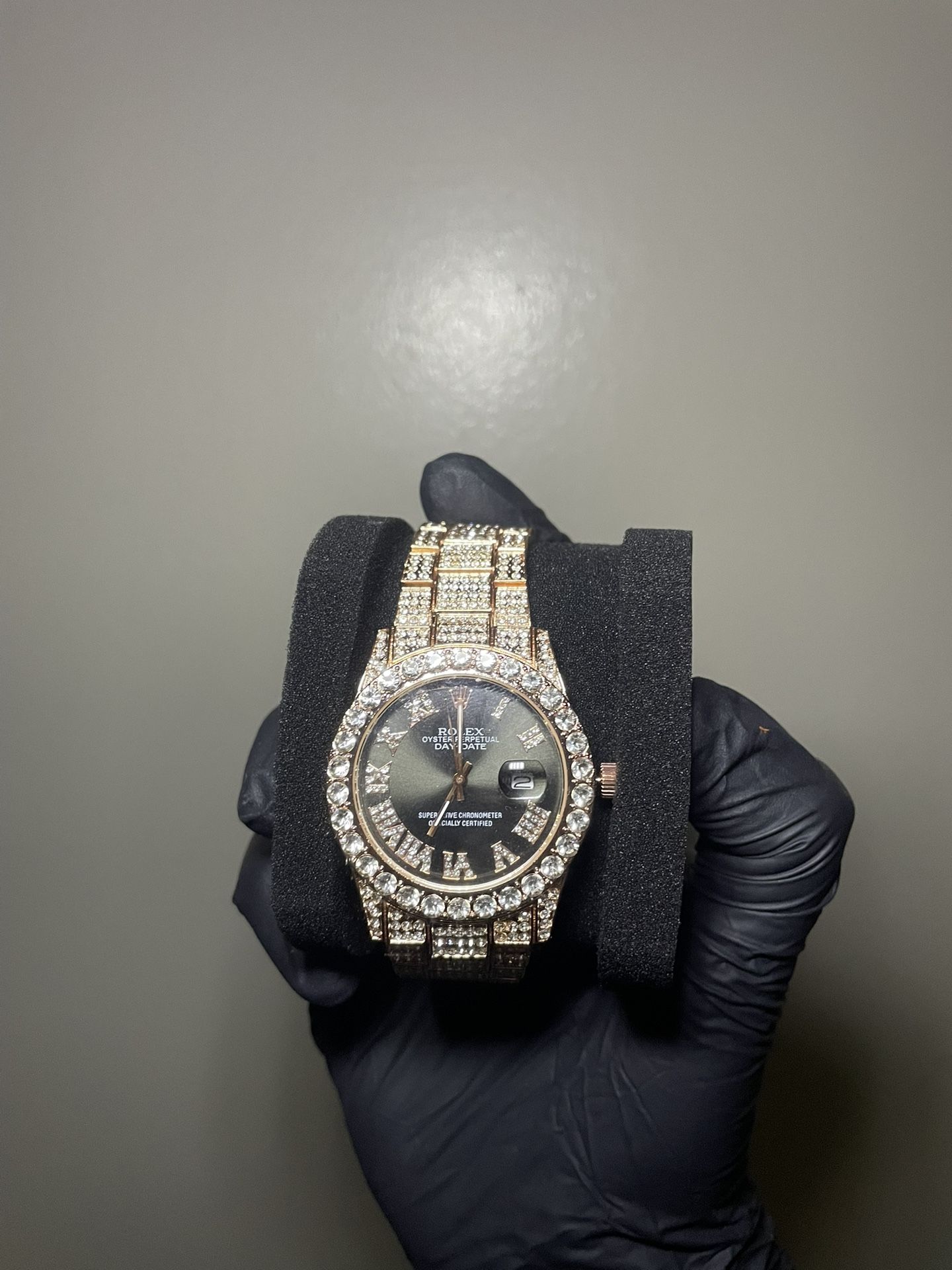 FAST REPLIES, SAME DAY PICKUP/DROPOFF AVAILABLE ROLLIE ICED OUT WATCH, STAINLESS STEEL, ROSE GOLD, 5A CZ STONES PHOTOS AND VIDEOS TALK BY THEMSELVES THIS IS THE WAY TO SHINE WITH AFFORDABILITY, IF ITS UP IS AVAILABLE