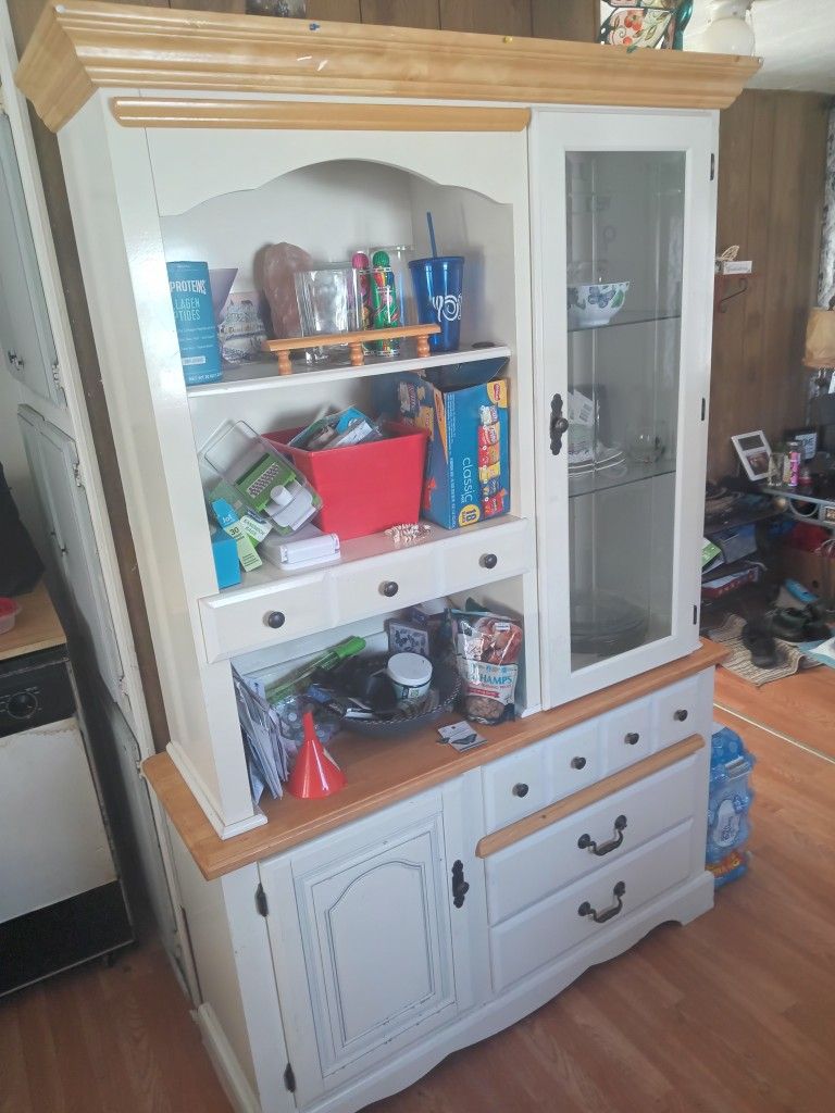 Good condition oak and nice white finish. Might need a coat of paint , some Knicks in the wood on the outer edge