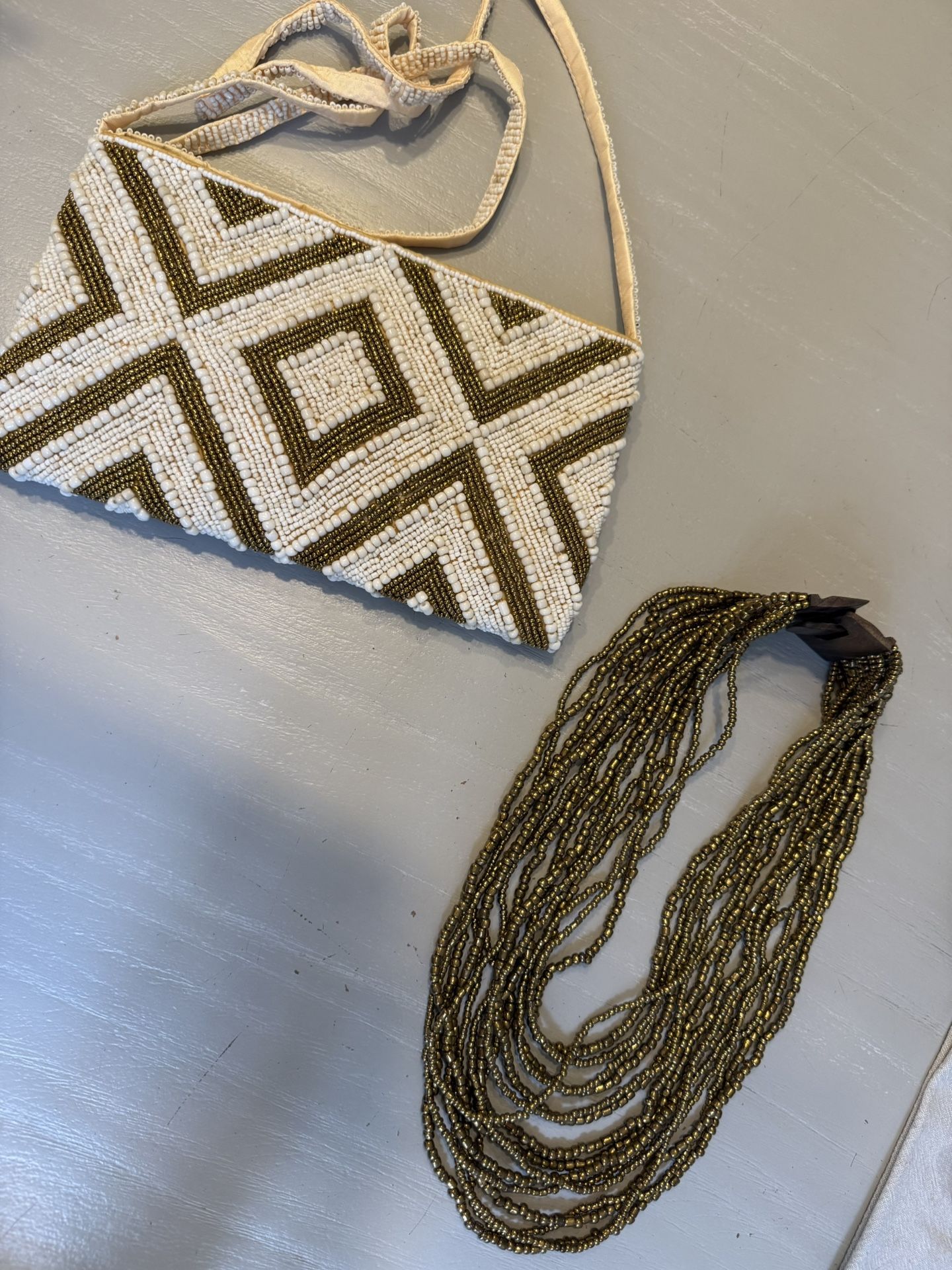 Dark gold beads, long purse strap beaded NEW! Miami Shores