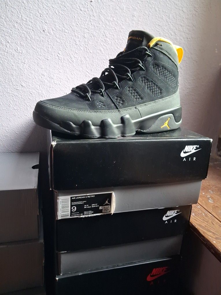 Blk/yellow Jordan 9s