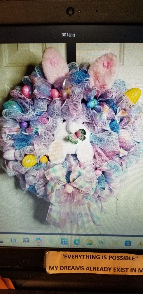 Easter Bright 20" Wreath w/ Eggs Bunny Butt & Butterflies New