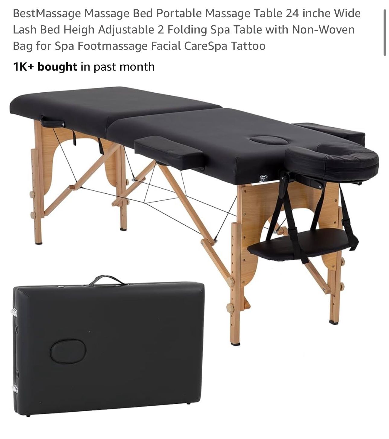 BestMassage Massage Bed Portable Massage Table 24 inche Wide Lash Bed Heigh Adjustable 2 Folding Spa Table with Non-Woven Bag for Spa Footmassage Facial CareSpa Tattoo
