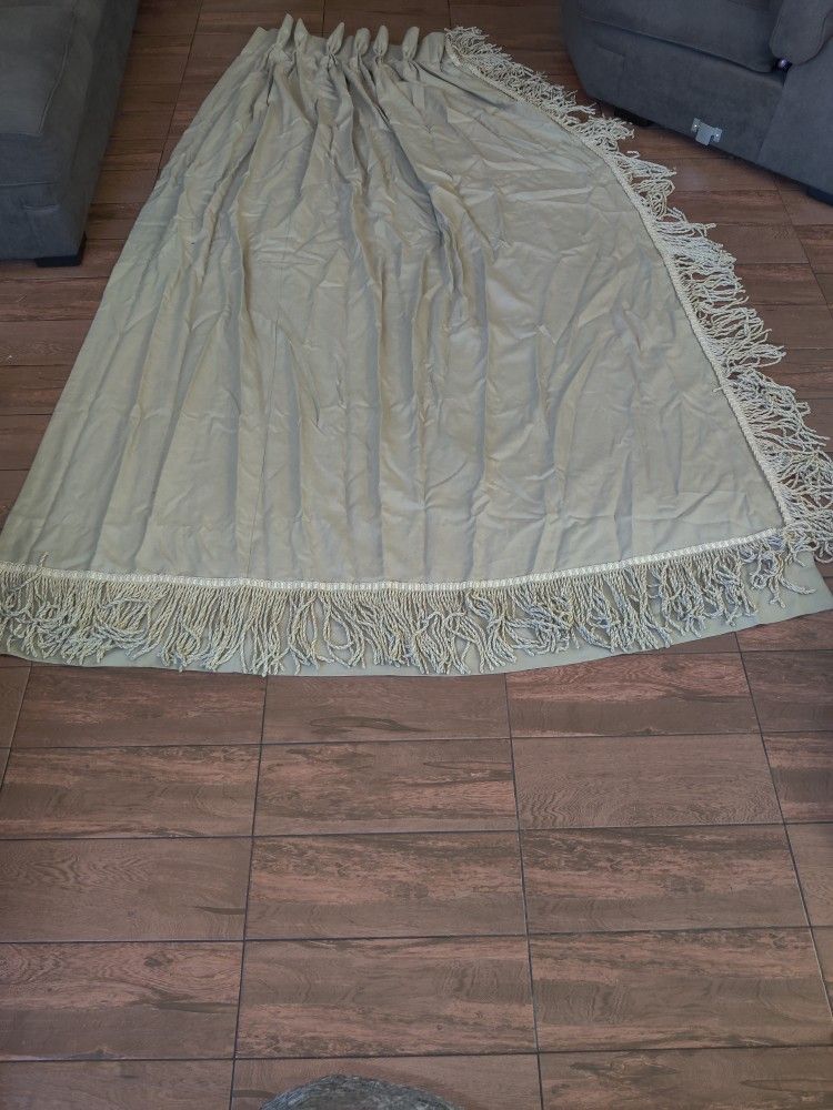 The drapes are in very good condition no holes no stains no scratches or tears,..they are 4 sections in total measurements are 2 1/2 ft in width and 8ft 8 inches in length per section... just had them dry cleaned as well for $200 originally used for my old home with large windows but now we have no use for them in our new home... Serious buyers only