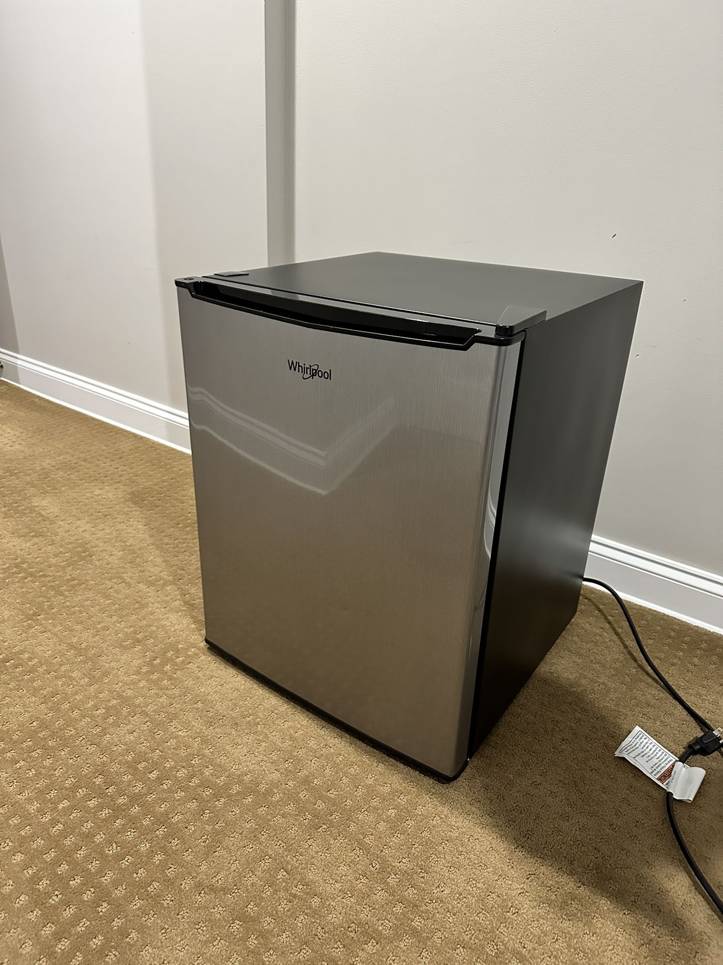Stainless Steel mini refrigerator with compact freezer Hardly used in excellent condition. 2.7 cu ft. Model WH27S1E