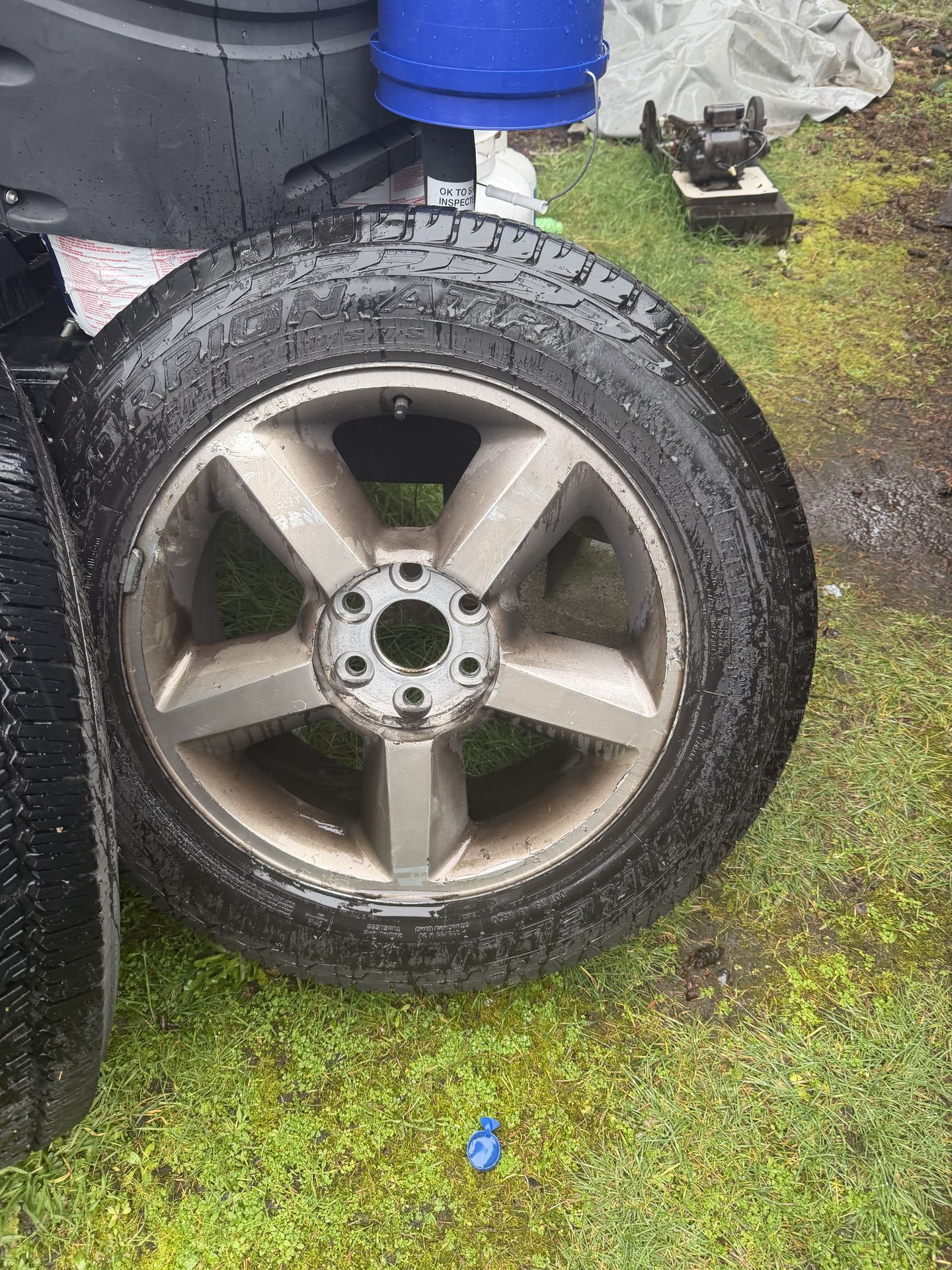 4 rims and tires, one rim hit the curb the tires on all 4 is still good