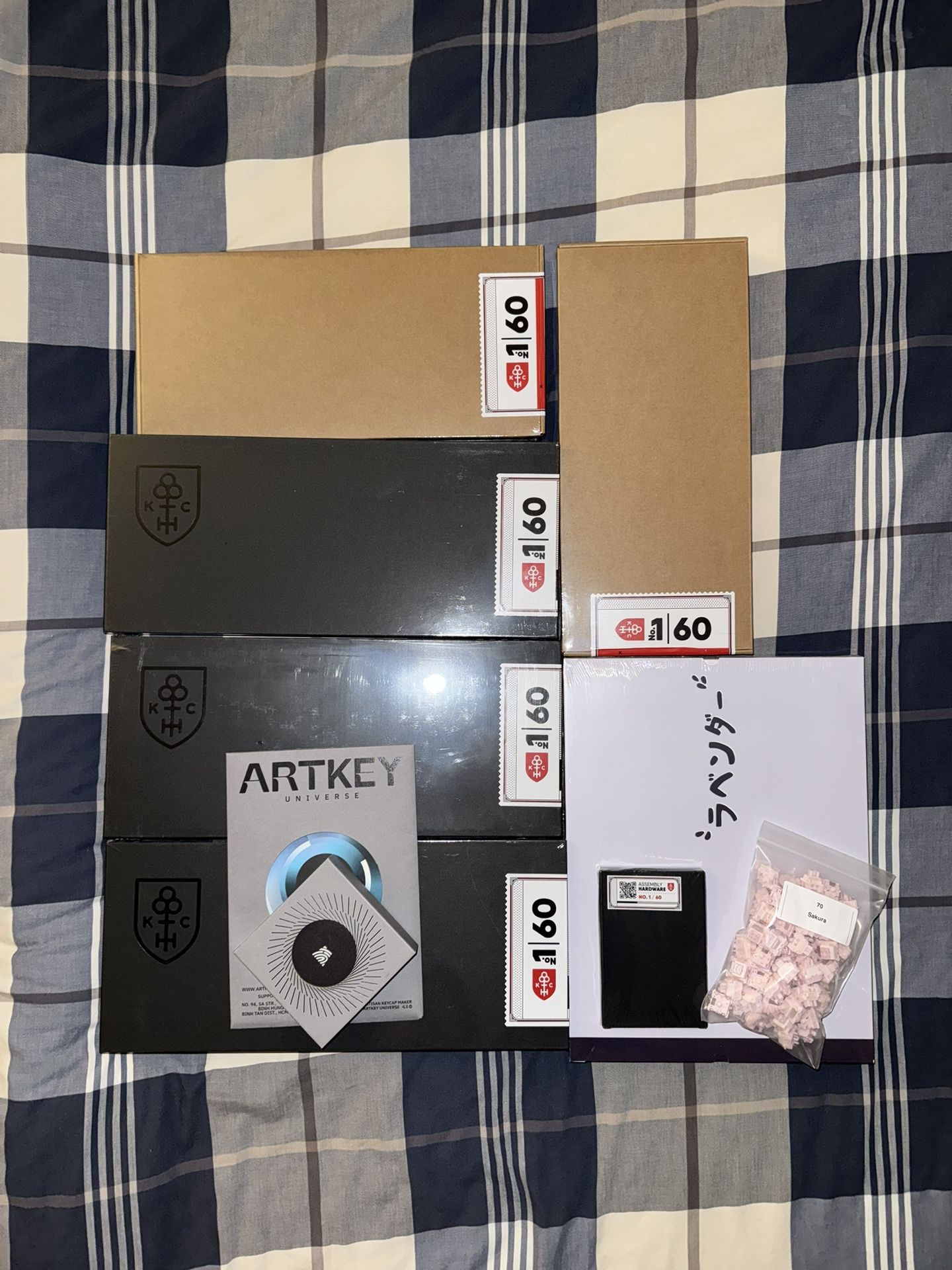 Selling my WKL No. 1/60 Keycult x Novelkeys mechanical keyboard. Keyboard: Top - WKL Coat White Bottom - Ano Silver PCB - Hotswap Plate - Brass Mid - Copper Artisan: Artkey Universe Sphynix (Legendary) Keycaps: GMK Lavender (Alt Base) Switches: Huano Sakura (V2) IMPORTANT!!! *I will not be accepting trades* *Items will not be sold separately*