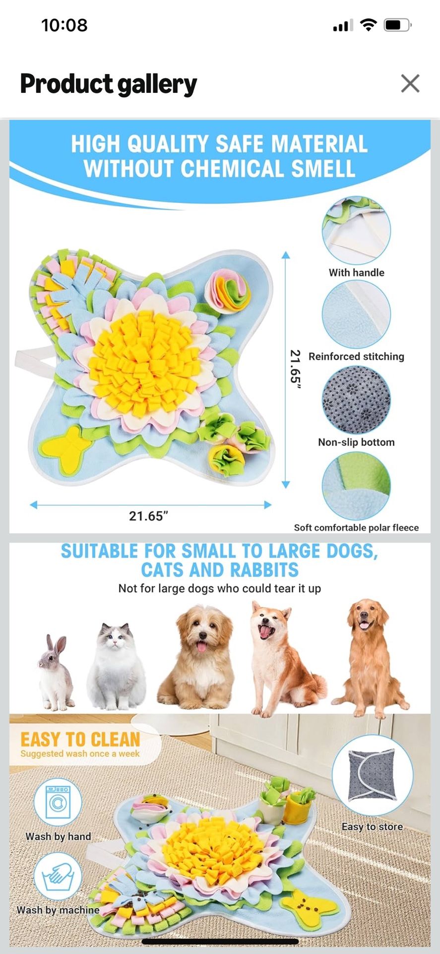 Snuffle Mat for Dogs Interactive Sniff Mat Slow Feeding and Keep Busy Snuffle Toys for Foraging Skill Development Anxiety Relief and Mental Stimulation, Machine Washable