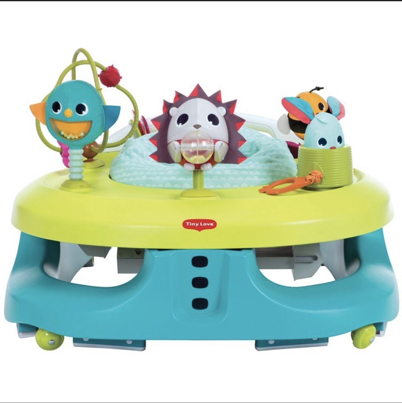 4-in-1 Here I Grow Mobile Activity Center Like New. The walker was put together but the baby never liked it and didn’t use it. It has brakes for non-mobile playtime and can also be a walker. Nothing missing and everything works. Paid $140 at Target. Comes assembled. East side pickup. Can deliver on Eastside only. Features Bouncing bird with rattling beads Playful beads-tree with rotating mirror Bee with rotating, clicking wings and a crinkly flower Hide & seek squeaky rabbit and jitter teether carrot Hedgehog with rattling bead-ball Machine washable seat Zippered seat adjusment 3-level height adjustment Seat spins 360º (with lockout option) Seat bounces (with lockout option) Stationary activity mode (with wheel lockout) Learn-to-walk push bar with play rings