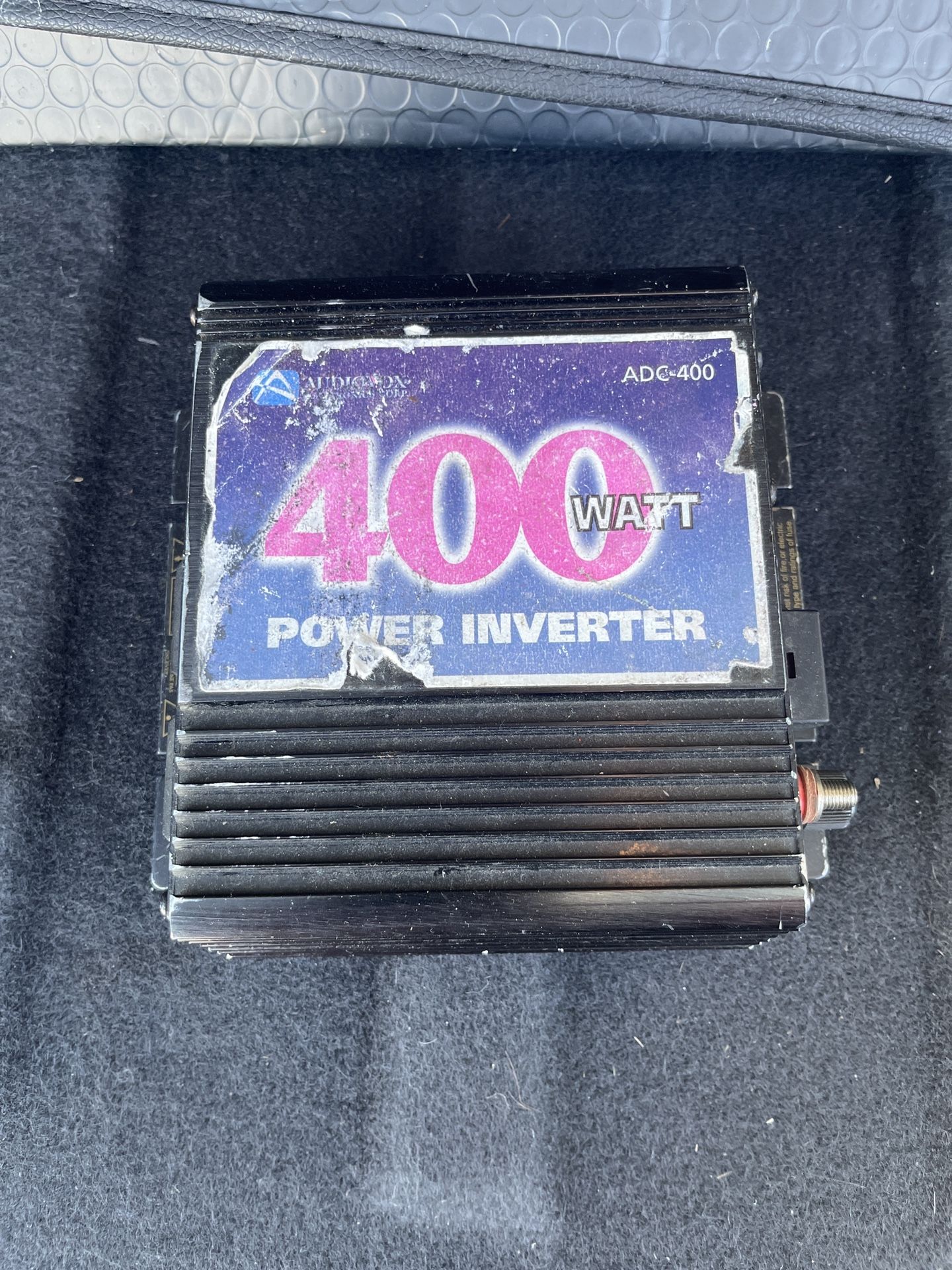 400 watt power inverter for sale. Converts your car’s 12V power into standard AC power so you can run small electronics on the go. Perfect for: • Charging laptops & phones • Small appliances • Road trips / camping • Emergency backup power Condition: Used, shows cosmetic wear (see photos), but still works. Easy to use — plugs into vehicle power source. Message me if interested! Pickup: Local pickup only