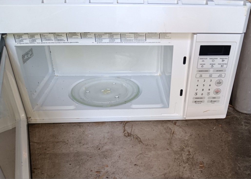 Large microwave. Clean & works as it should. Has bracket to mount over stove or can sit on counter.