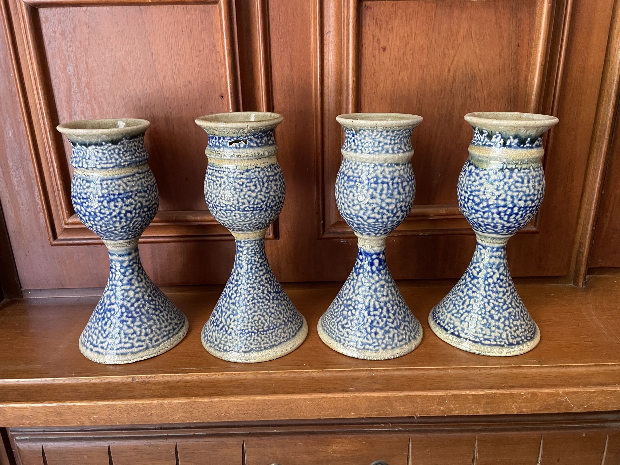 Set of four, 8” high. Selling as a set only. Have the matching pitcher , handle is broken. Would include for $10 more. In VB near Haygood Shopping Center. Cash and exact change only please.