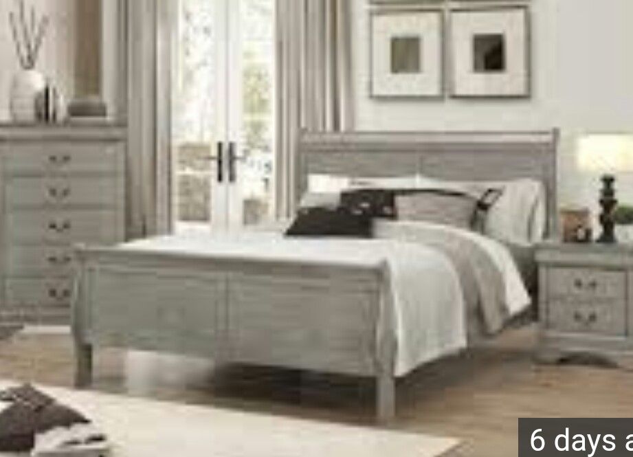 Brand new king bed frame + dresser + mirror + nightstand 4PCs bedroom set, 5-drawer chest is extra