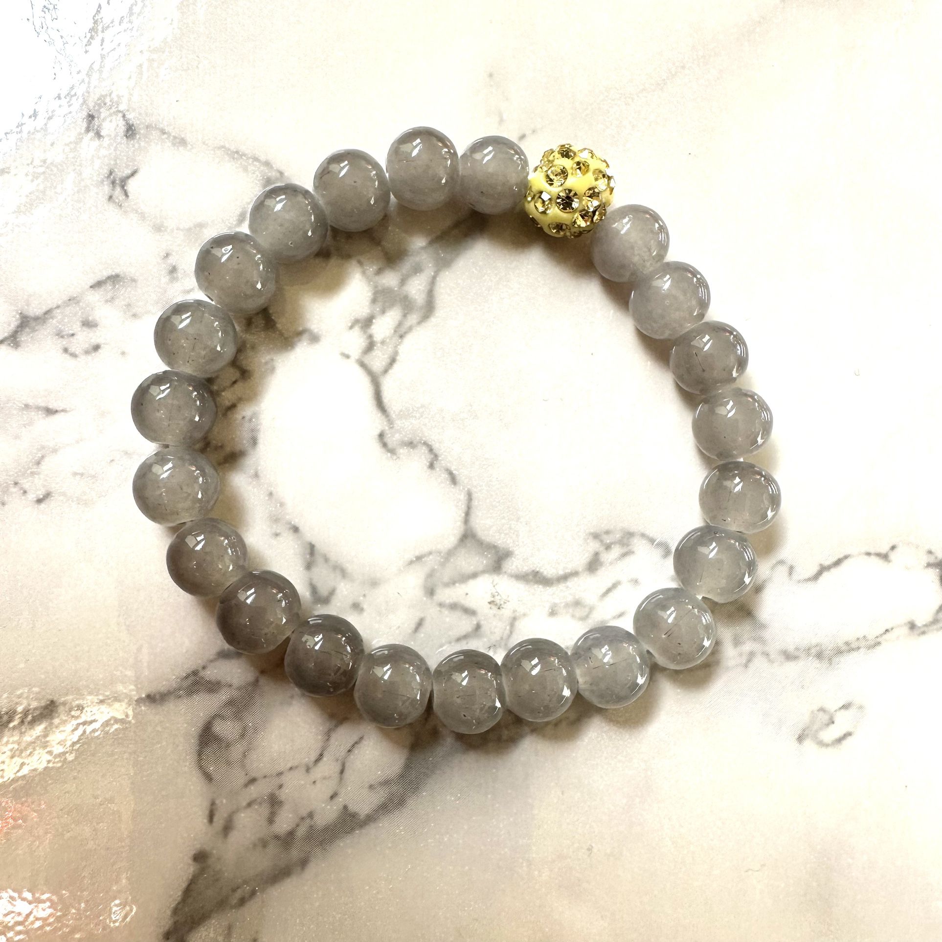 Grey Beaded Bracelet With Yellow Rhinestone Bead