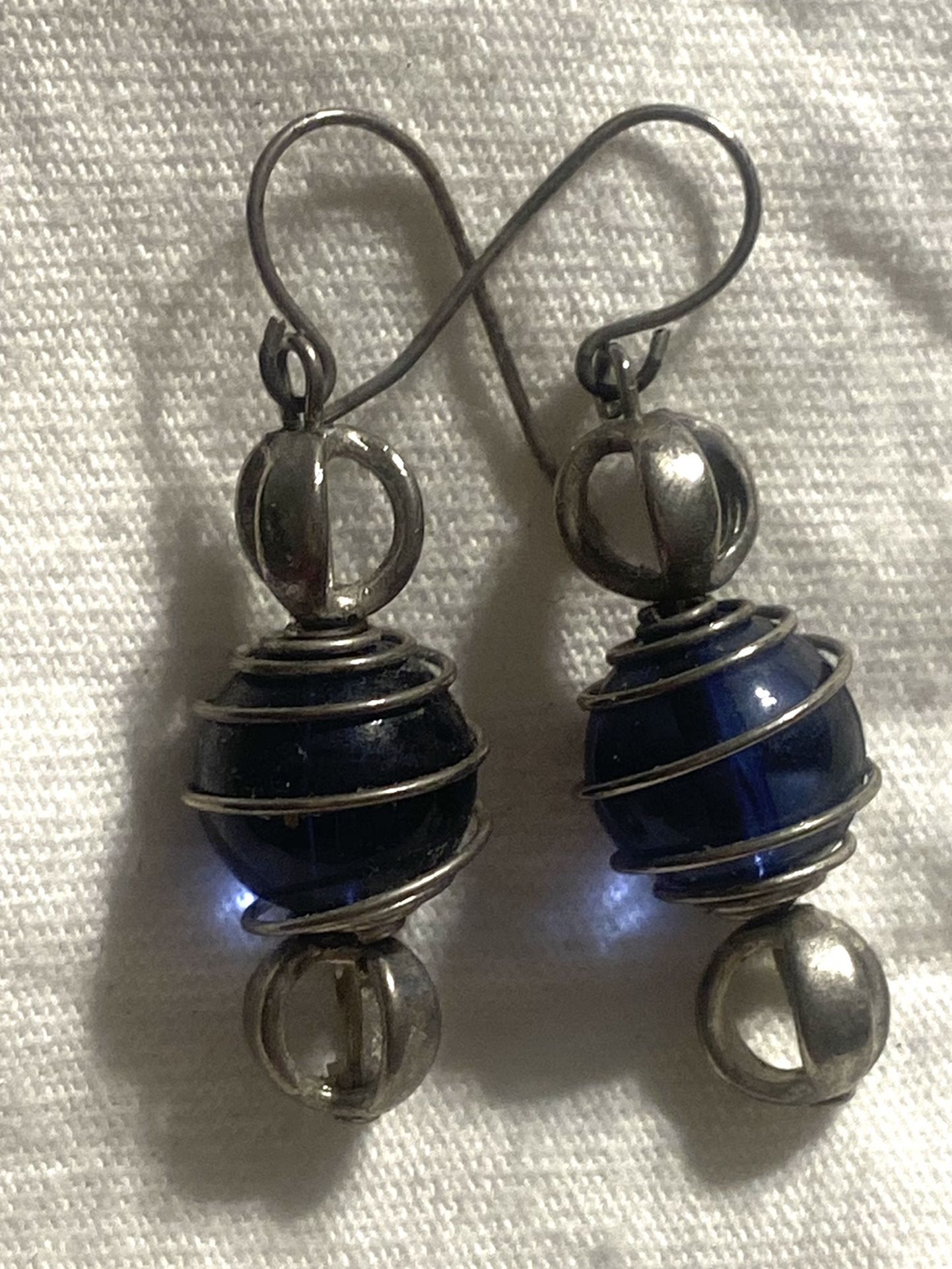 Blue marble wire wrapped earrings 1 1/2” earrings drop on an ear wire Feel free to make me an offer