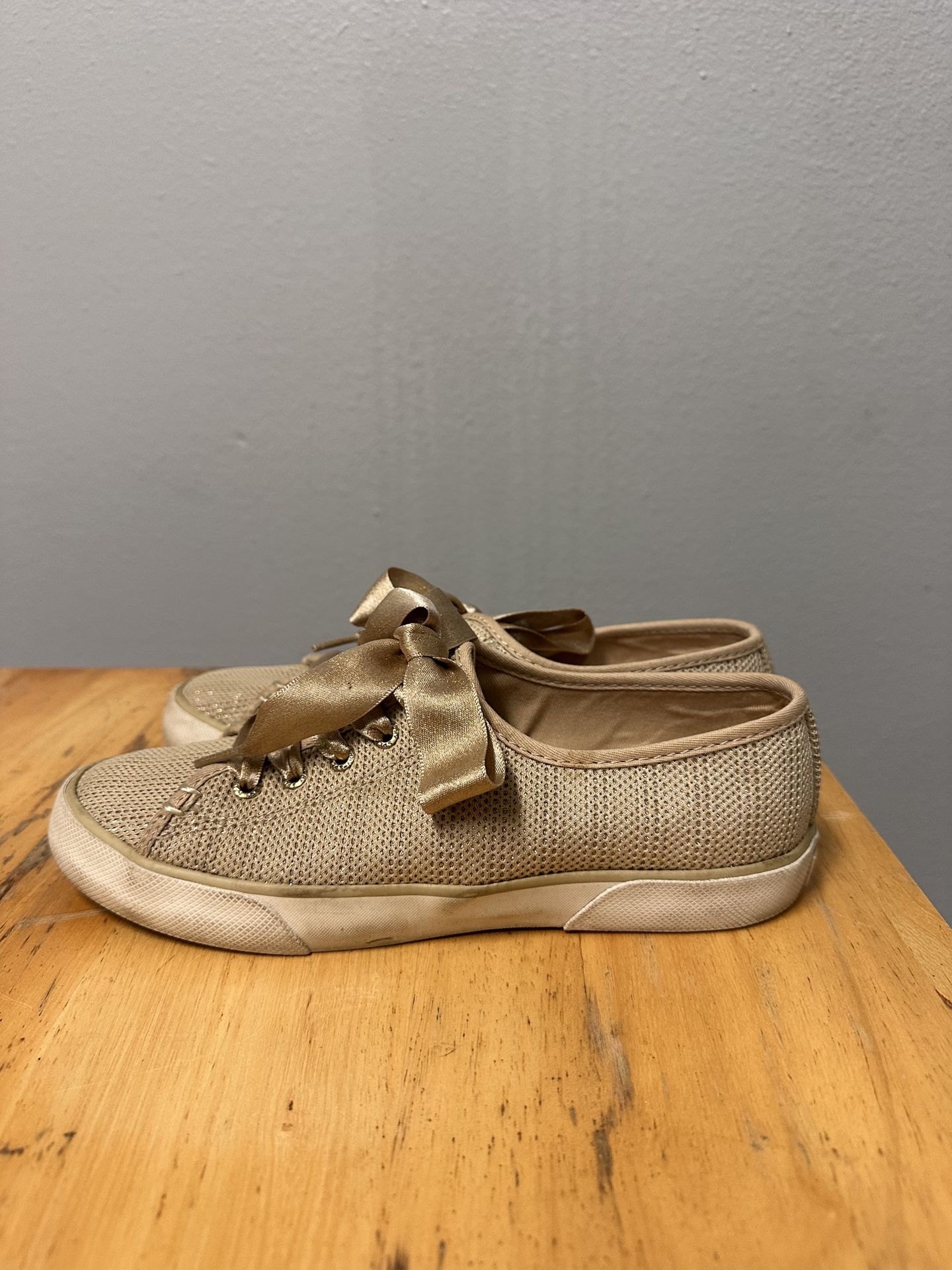 Gold Sperry shoes