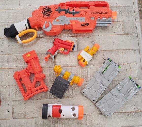 All in good condition All works good Both guns shoot good Everything is in tack COMES EVERYTHING IN FIRST PICTURE PLUS 26 DARTS MUST HAVE EXACT CHANGE $40 I'M FIRM ON THE PRICE PICK UP ONLY Nerf gun Guns Nerf