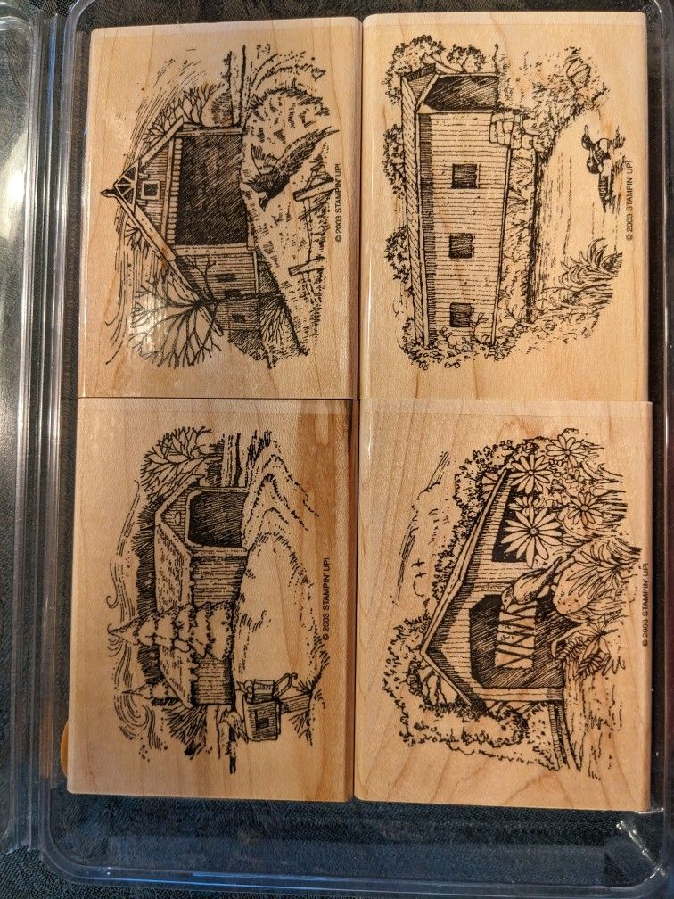 Stampin Up, 2003 Changing Seasons, Four Piece Rubber Ink Wood Mounted Stamp Set