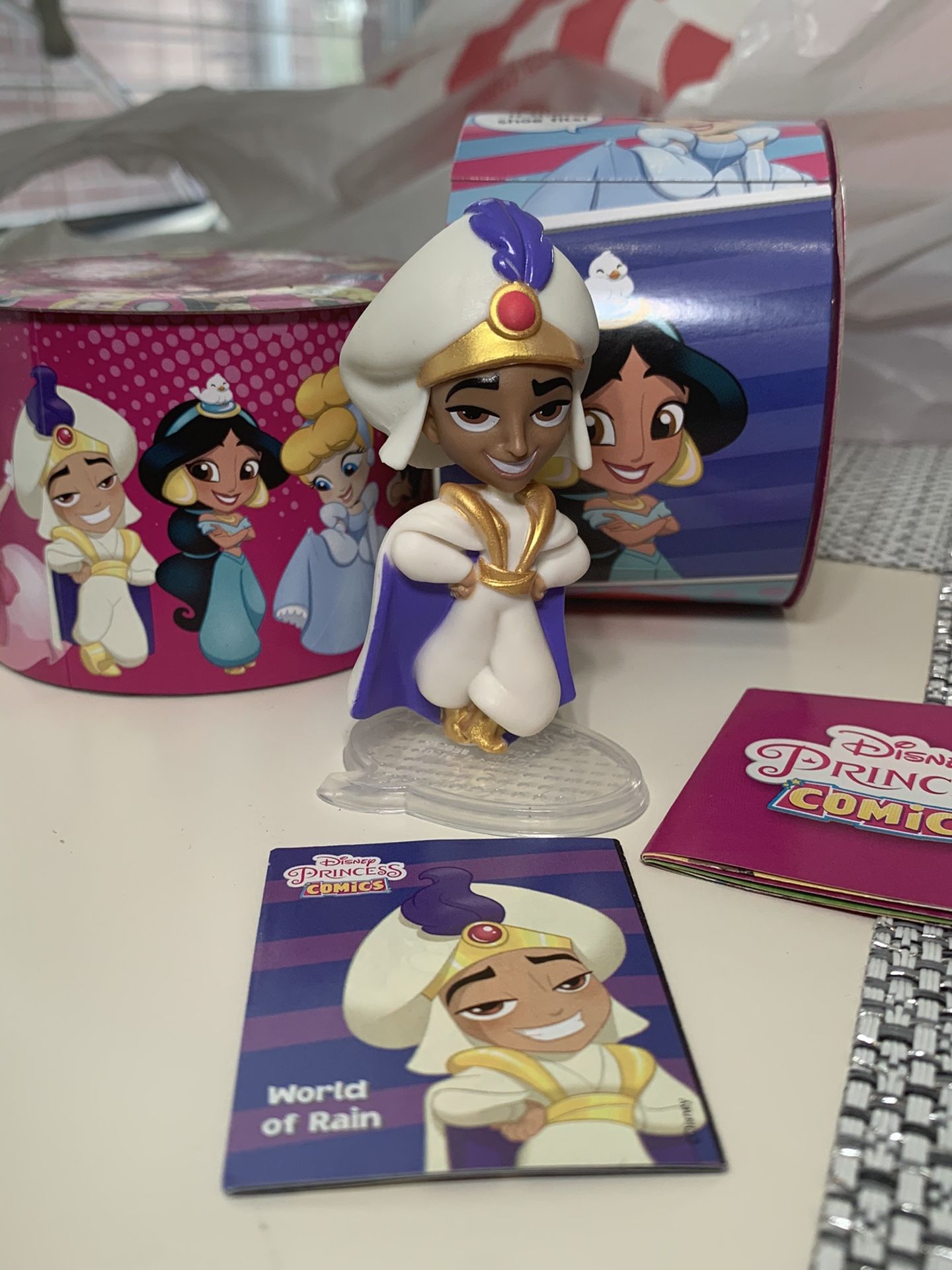 New Disney princess comic Aladdin mini figure. Comes as pictured with comic and check list.