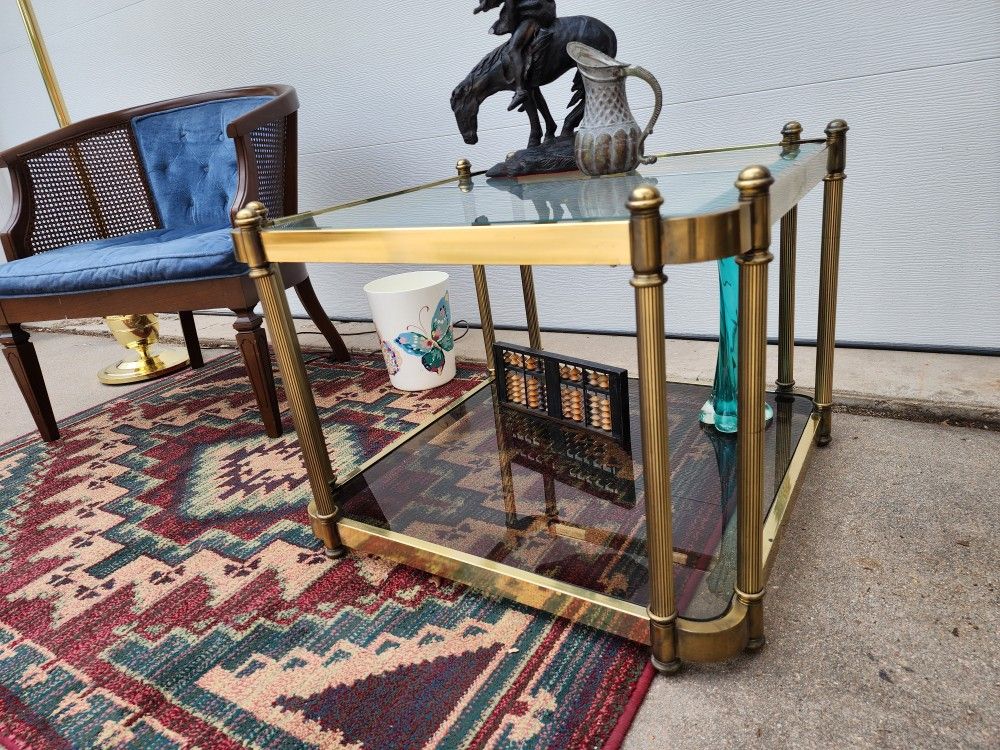 Dimensions in pictures. Brass and glass side table Really nice piece