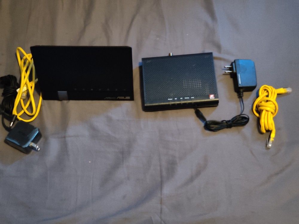 I've got a used Zoom DOCSIS 3.0 modem and a Asus RT-56u router combo that I used to use when I had a different ISP. I've since switched providers and have had these two stores away. They served me well for a few years and also saved me $ on the modem rental fees from the ISP. These two support an internet connection speed of up to 300mbps if in not mistaken. Please check with your ISP before purchasing. Both come with power cables and Ethernet cables and I still have the original boxes on hand. Im including them in the offer at no extra charge. Here are the separate prices: -router: $40 -modem: $15 -both: $50