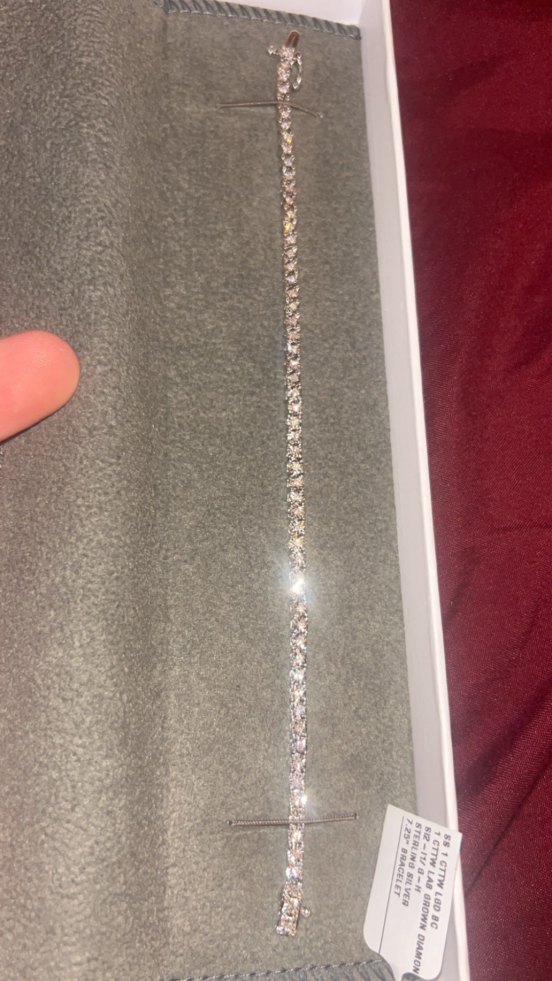 Brand new 1 carat total weight lab-grown diamond tennis bracelet. Set in solid sterling silver with secure clasp. Diamonds are G–H color and SI2–I1 clarity, giving a bright and clean look. Bracelet is 7.25 inches long and comes in original box with tag. Perfect for everyday wear or a gift.
