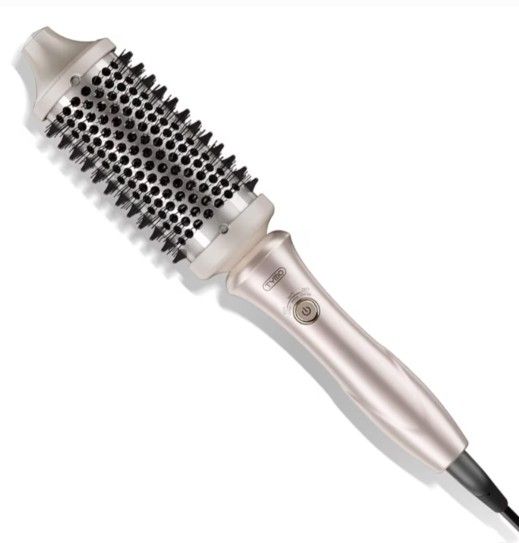 TYMO 2.0 Thermal Brush Curling Brush - STYLUX 1.7" Blowout Volumizer with Flexi-Fit for Hair Straightening, Heated Round Styler Tool, Hair Straightener and Curler 2 in 1, Dual Voltage & Light, Gold New- sealed