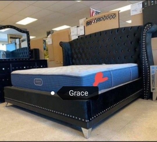 Luxor Black Bed Queen King Available No Needed Credit Check Next Day Delivery 💞Q$699 K$749