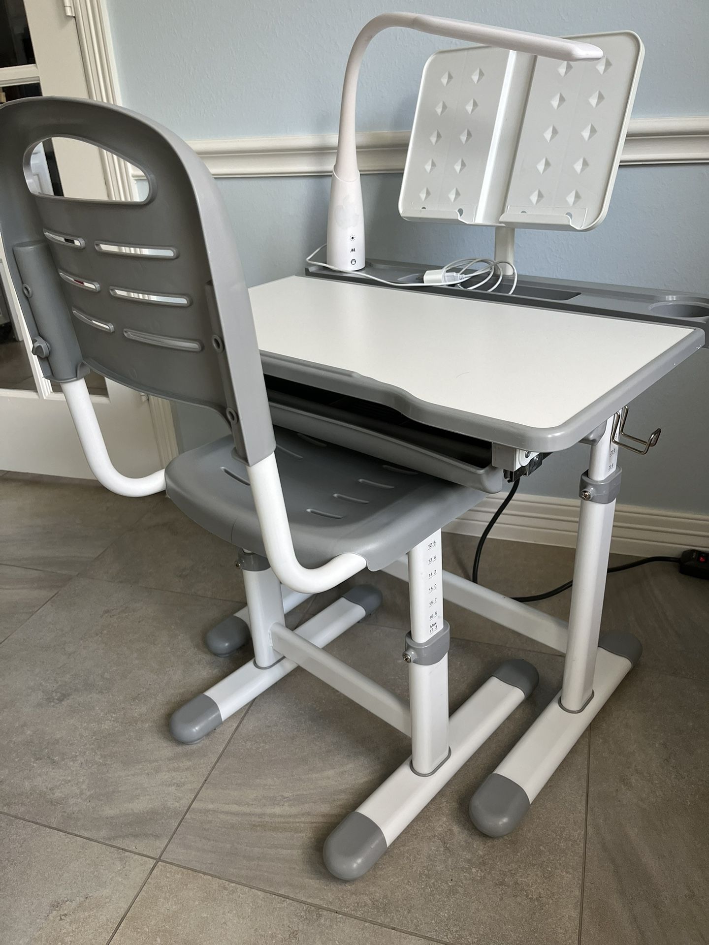 Currently I have 2 identical desks with chairs in a great condition. Desks and chairs height are adjustable. The same desk on Amazon is selling for $119.