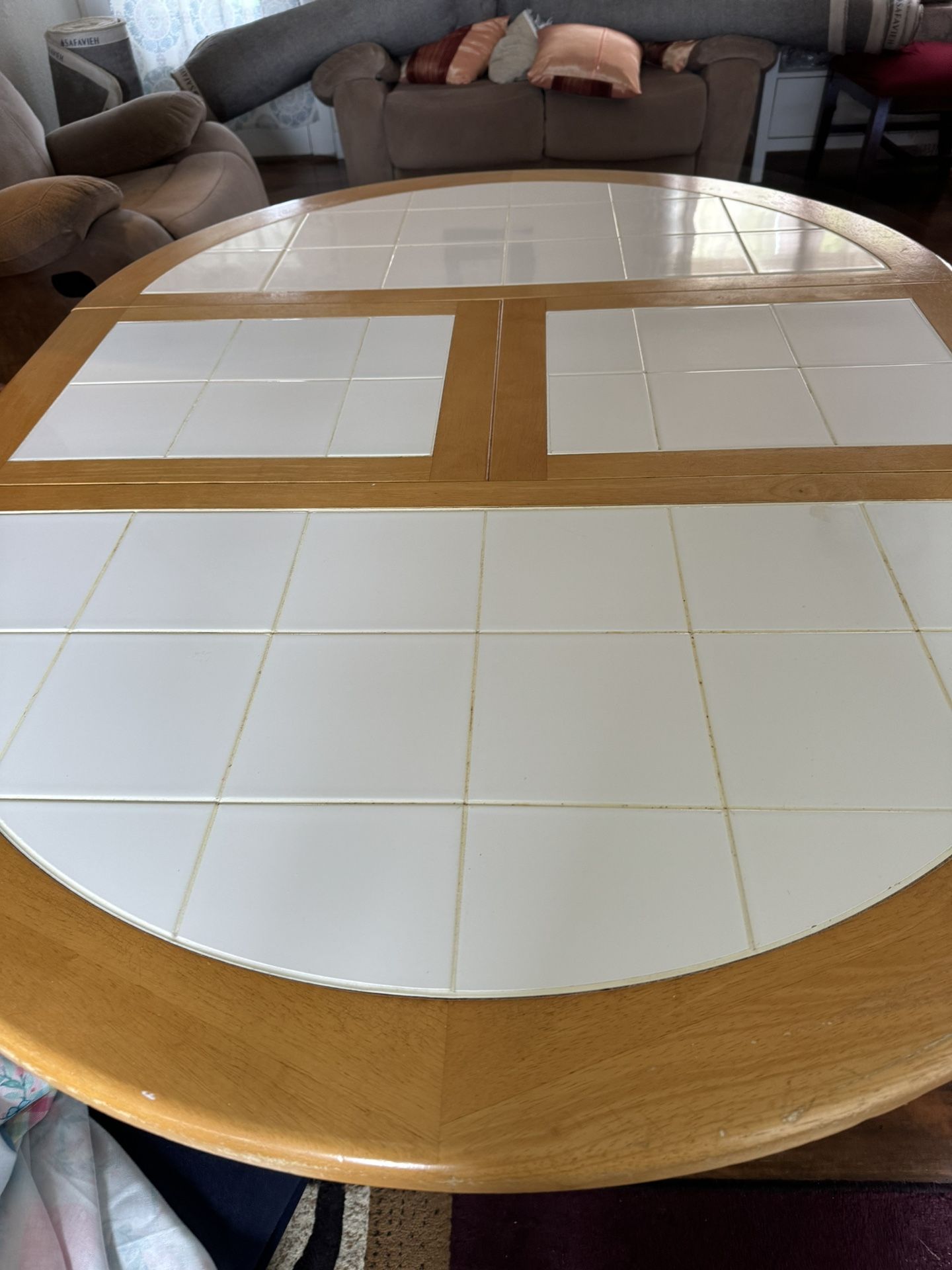 Old style dining table White tile Wood work Very sturdy Dinner Table Outdoor Table