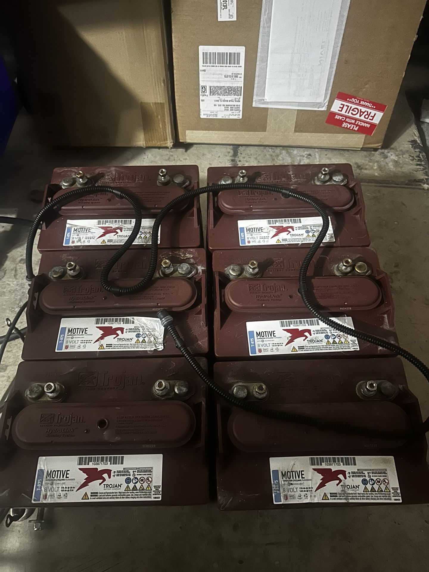 8 Volt Trojan red T875s pulled from a cart for a lithium conversion. Batteries were load tested and holding charge. Dated 2022