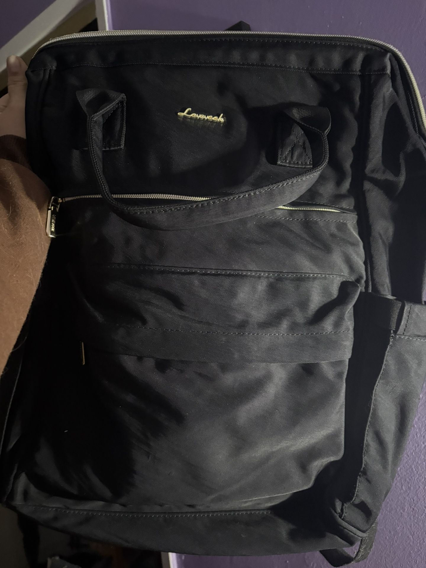Very spacious but not big or bulky. It fit my 17 inch laptop along with other school things and it’s got a usb cable built in for your portable chargers. Two wide side pockets for your Stanley cups + many interior pockets and a secret one on the back. Perfect for school and even for travelling Firm price