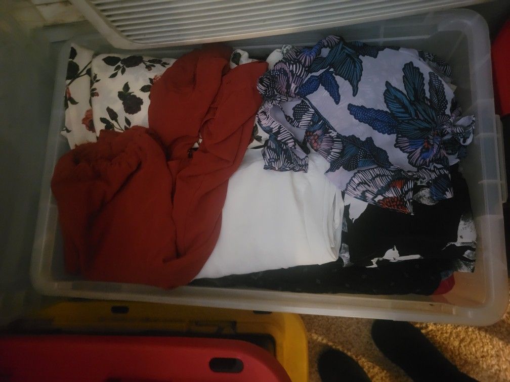 Bin full of cute women's dresses size small-large All in excellent condition More than just the ones pictured and still adding. Take them all for only $50